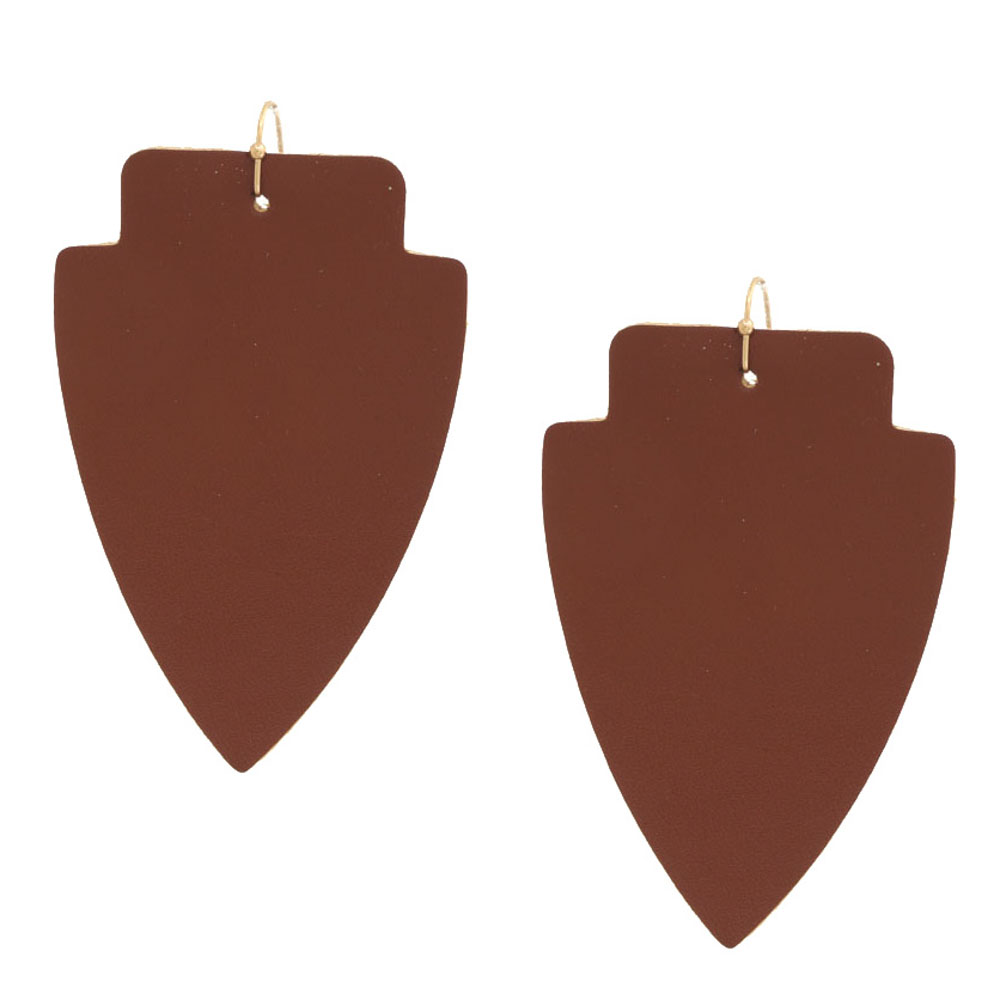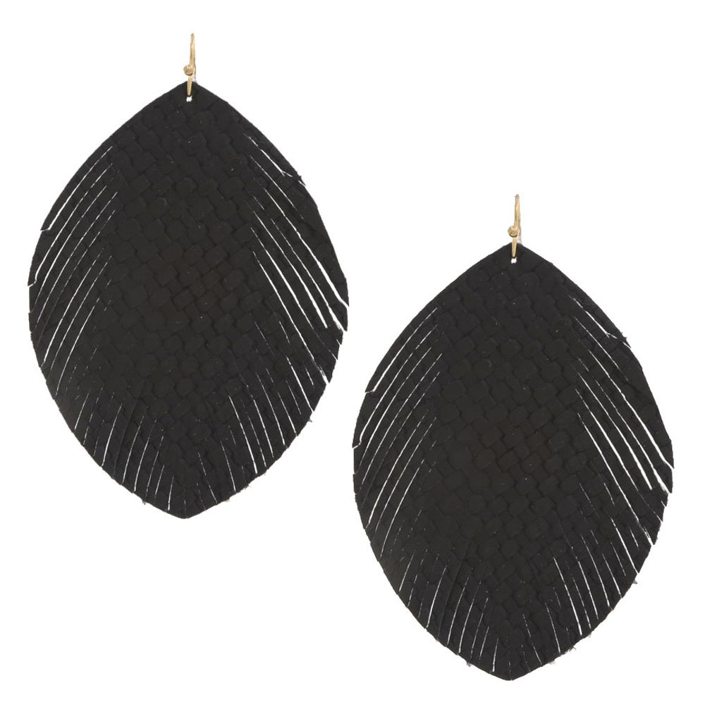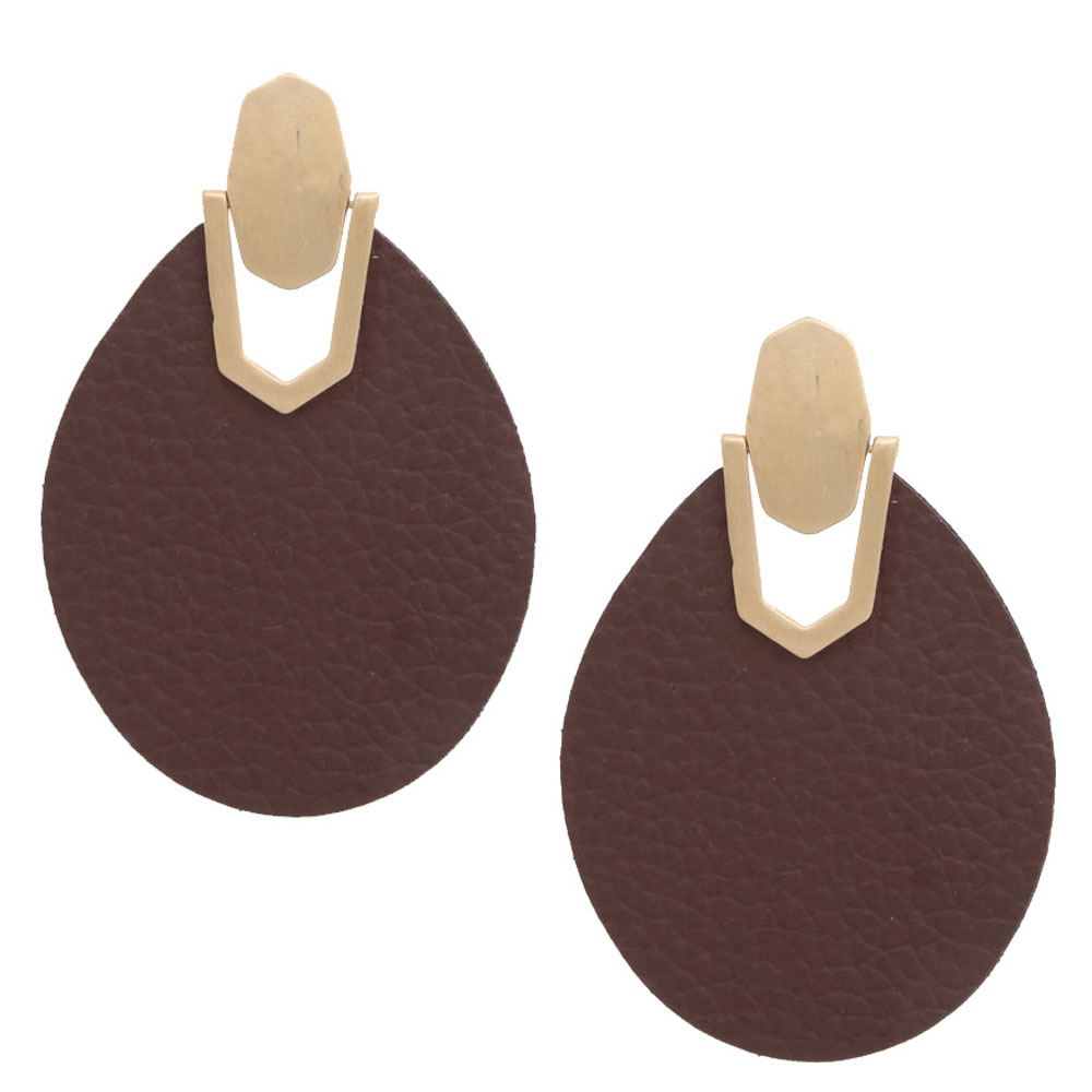 FAUX LEATHER POINTED OVAL DANGLE EARRING