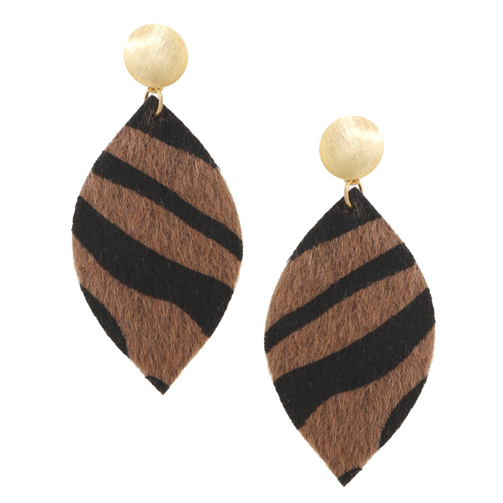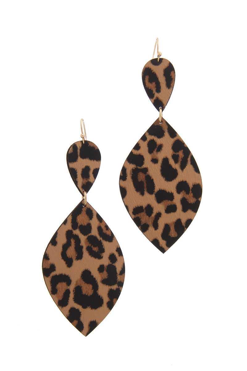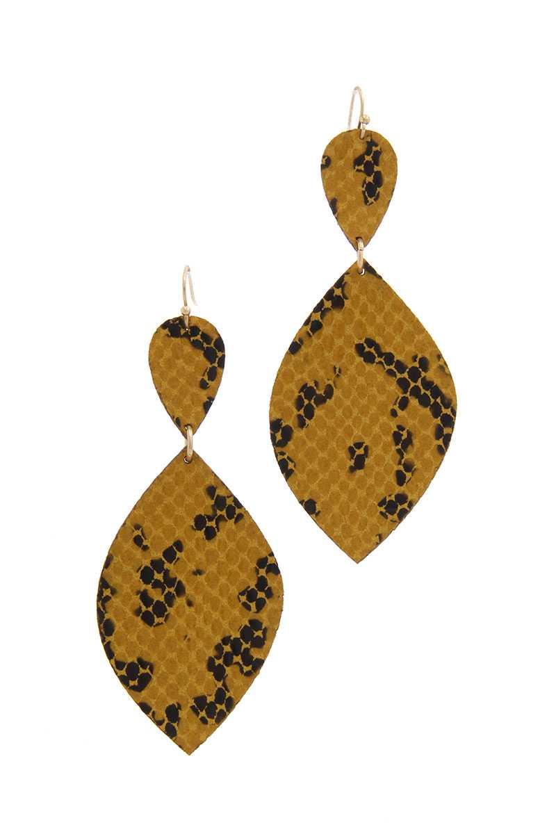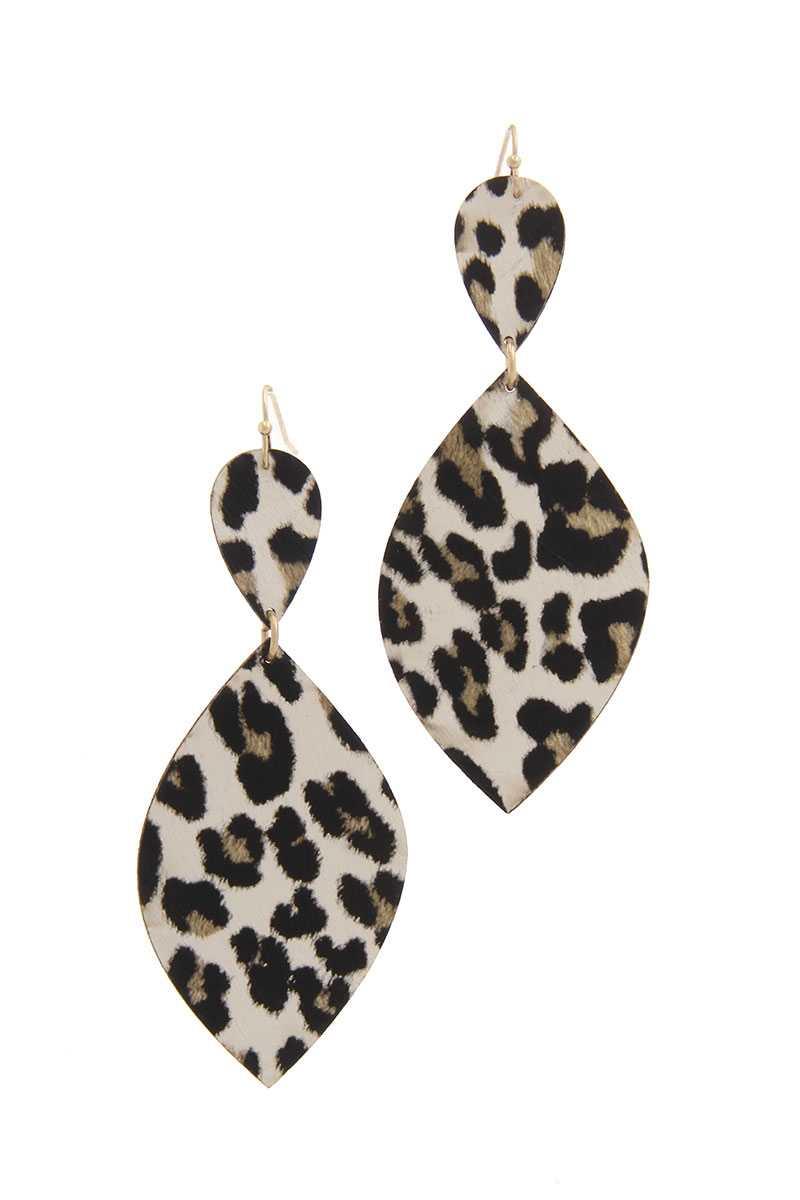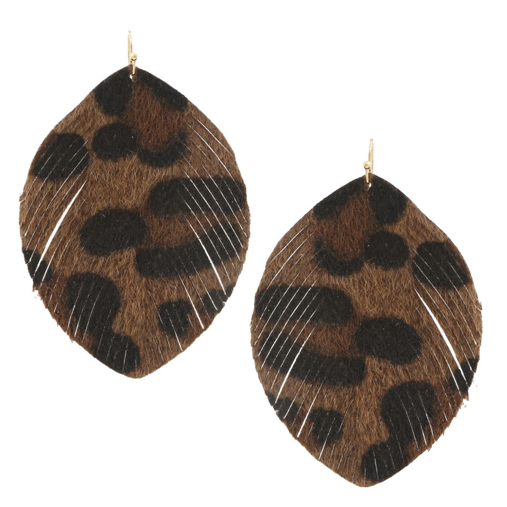 GENUINE LEATHER ANIMAL PRINT POINTED OVAL POST DROP EARRING