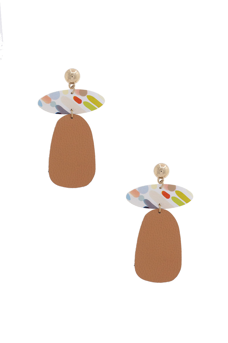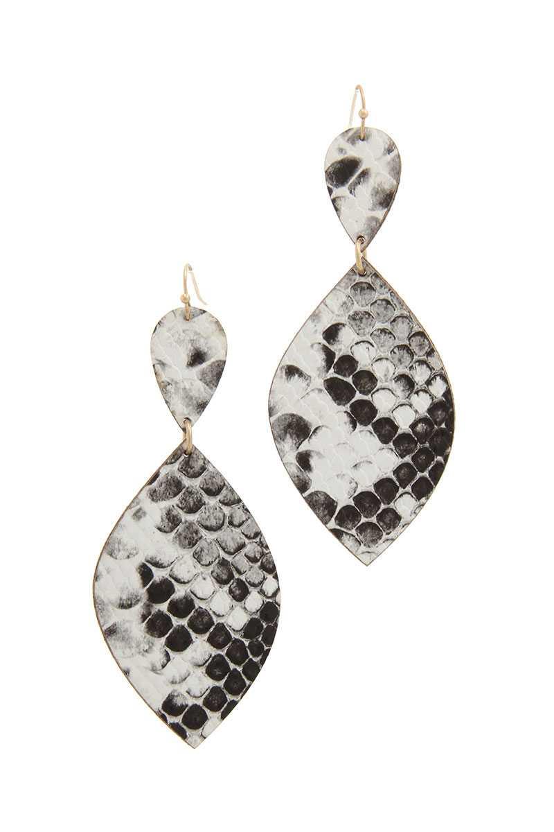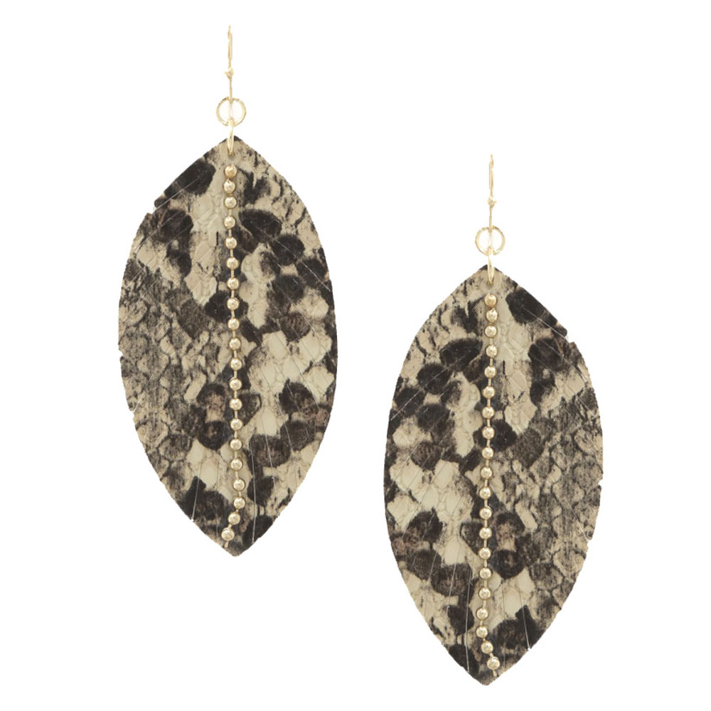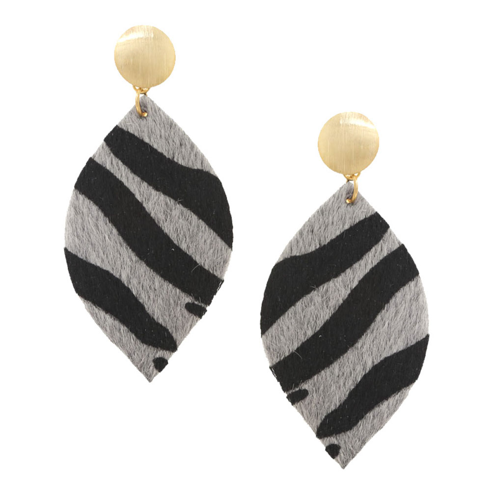 GENUINE LEATHER ANIMAL PRINT POINTED OVAL POST DROP EARRING