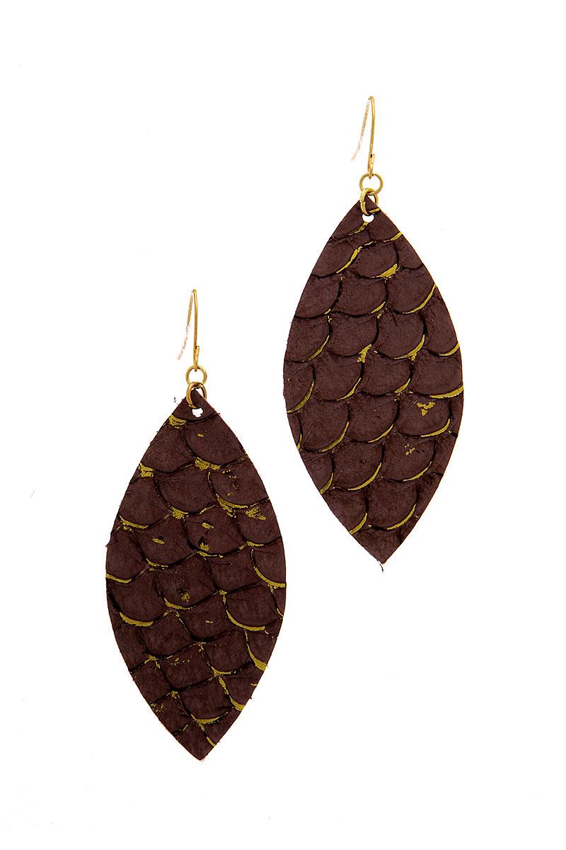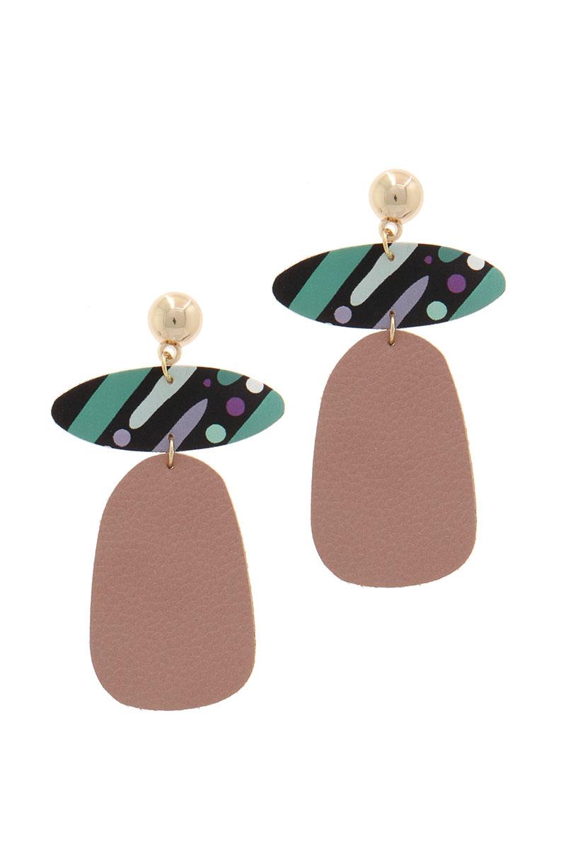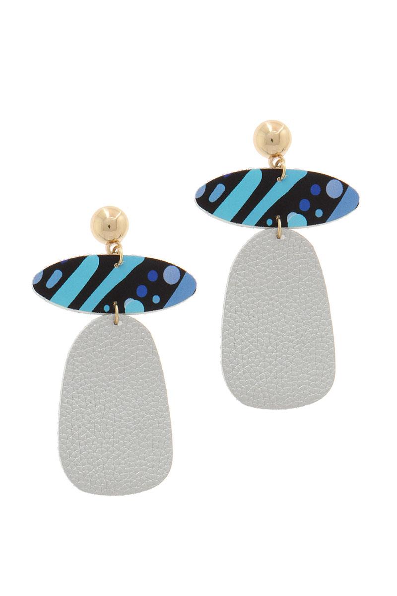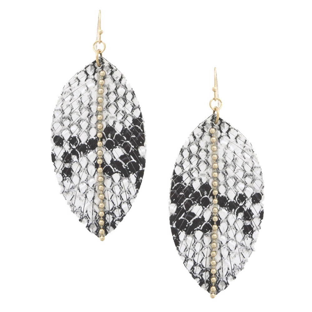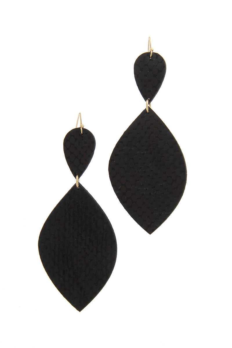 GENUINE LEATHER ANIMAL PRINT POINTED OVAL POST DROP EARRING