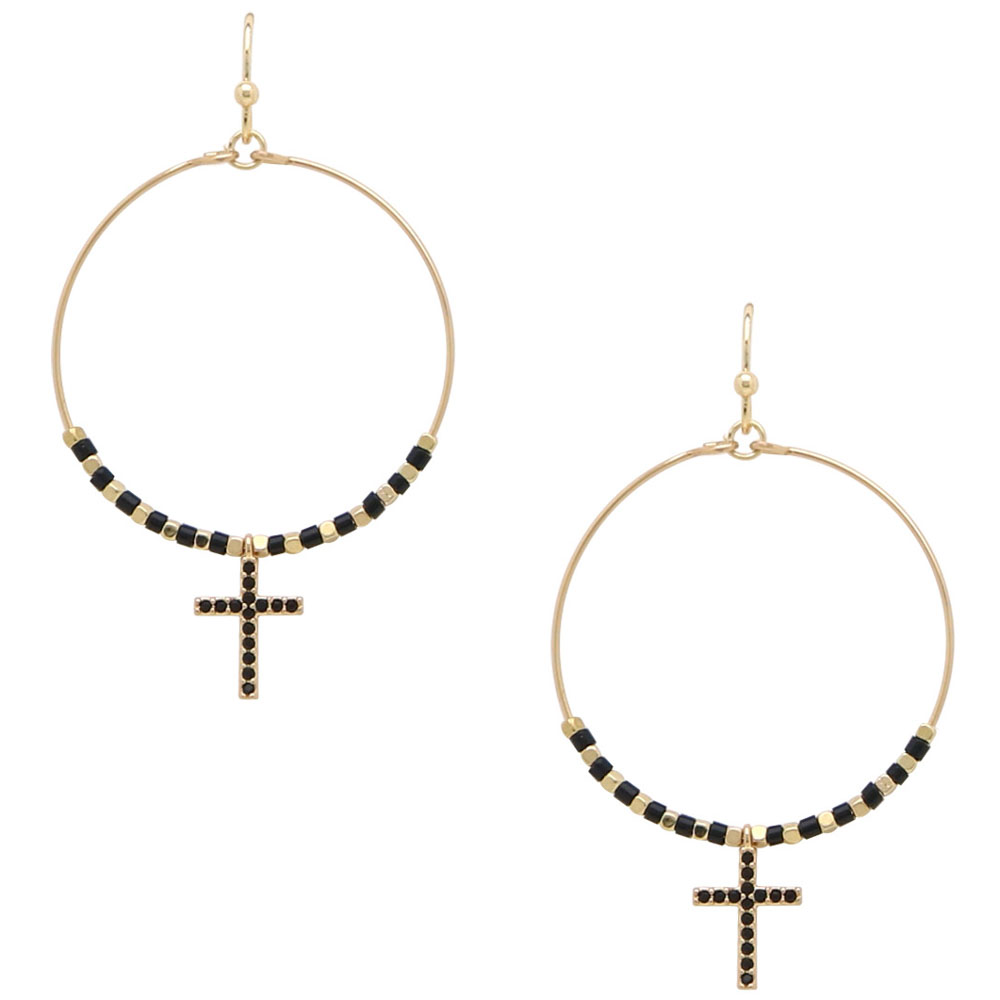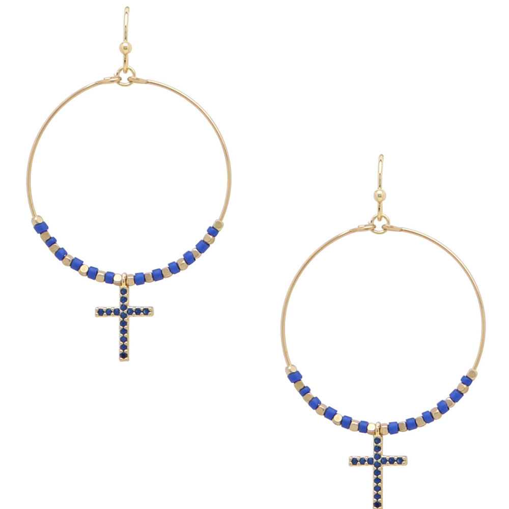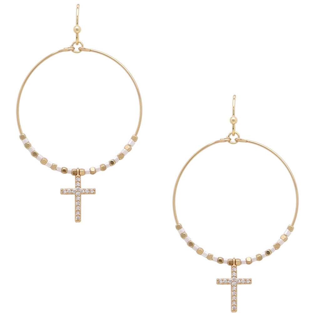CROSS FLOWER RHINESTONE DANGLE EARRING