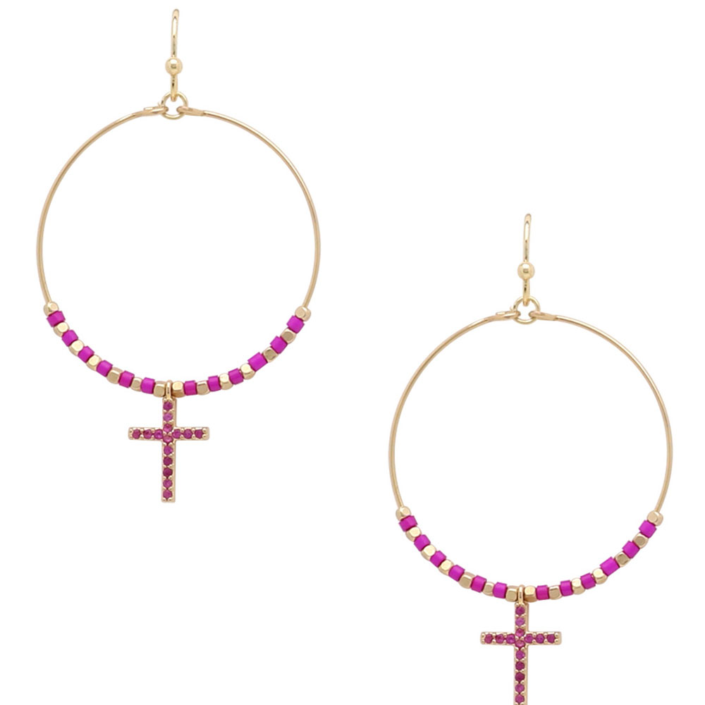 PINK RIBBON SEED BEAD MULTI STONE EARRING