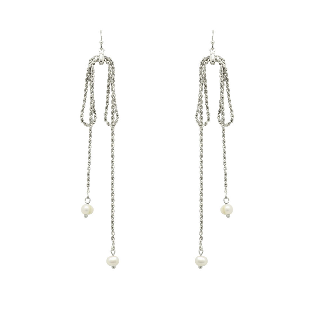 PEARL BEAD TWISTED METAL HOOP EARRING