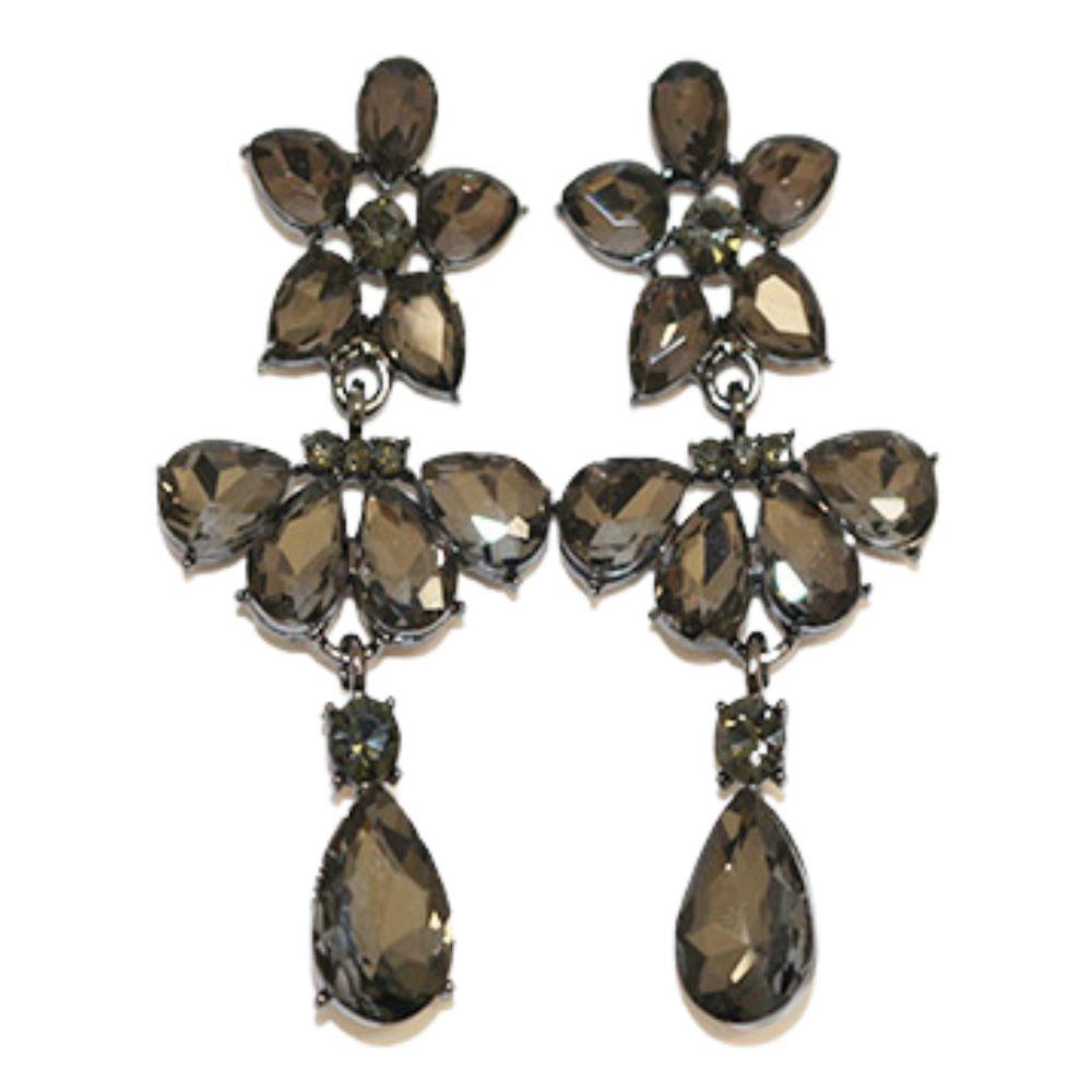 FLOWER TEARDROP RHINESTONE DANGLE EARRING