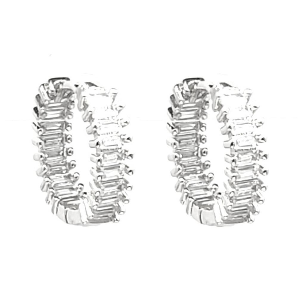 14K GOLD WHITE GOLD DIPPED MUSE PAVE CZ HOOP POST EARRINGS