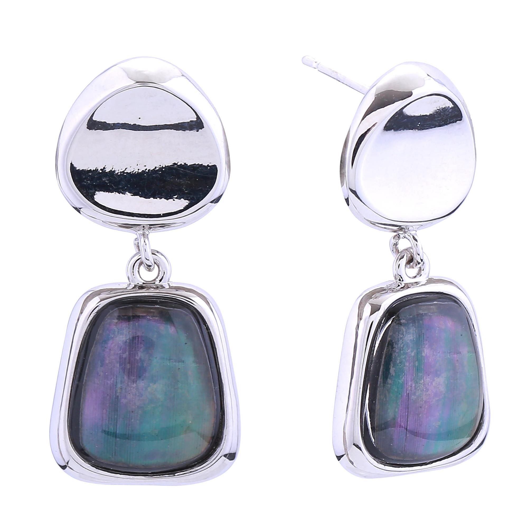 ROUND BEAD POINTED OVAL DANGLE EARRING