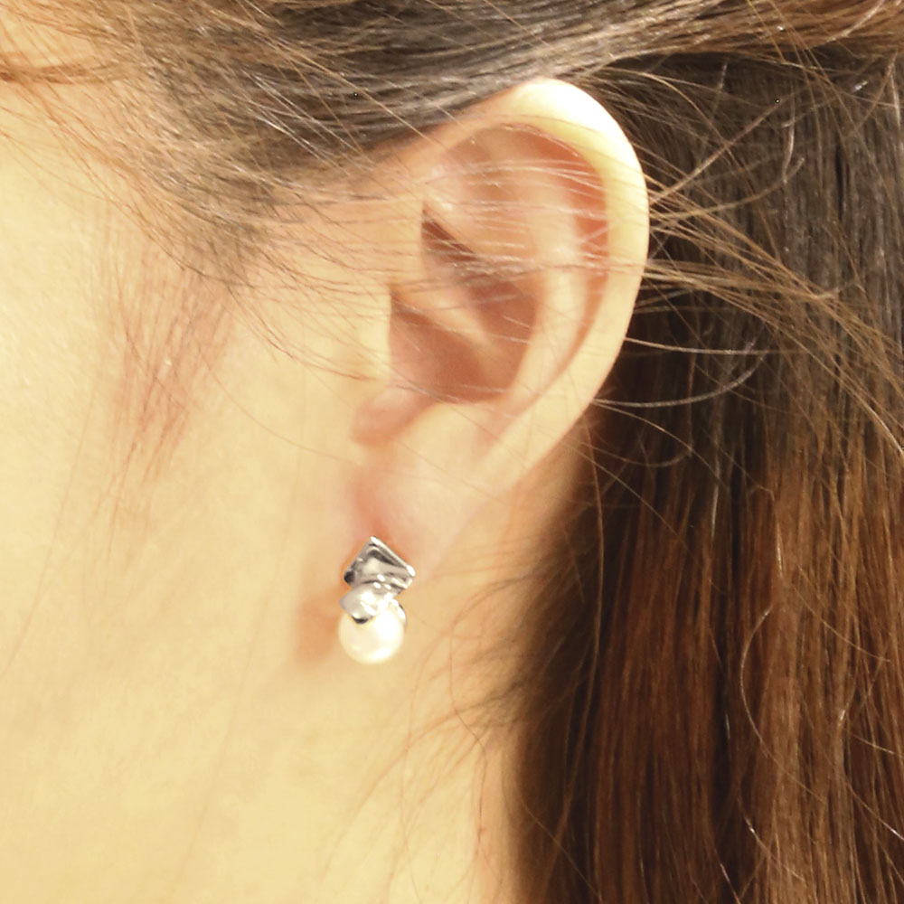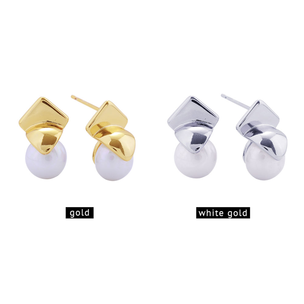 14K GOLD/WHITE GOLD DIPPED PEARL SOUARE POST EARRINGS