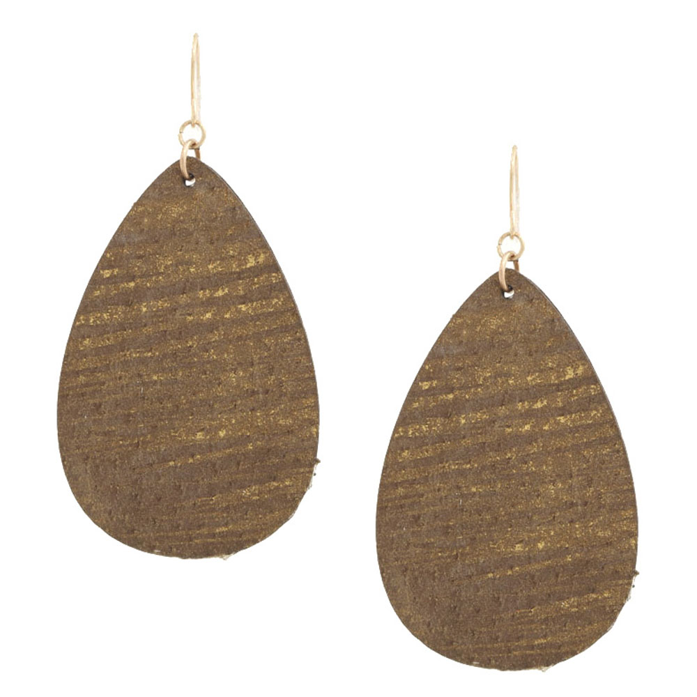 CORK LINE PATTERN TEARDROP DANGLE EARRING