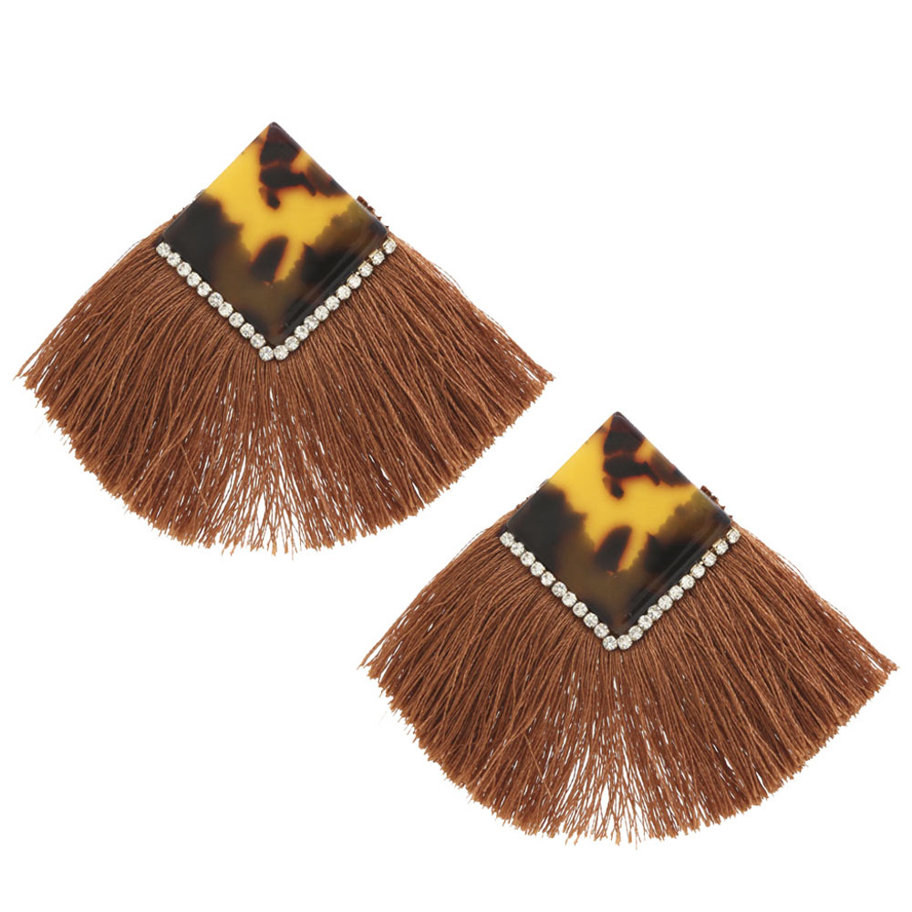 ACETATE RHINESTONE TASSEL DANGLE EARRING
