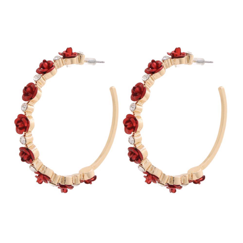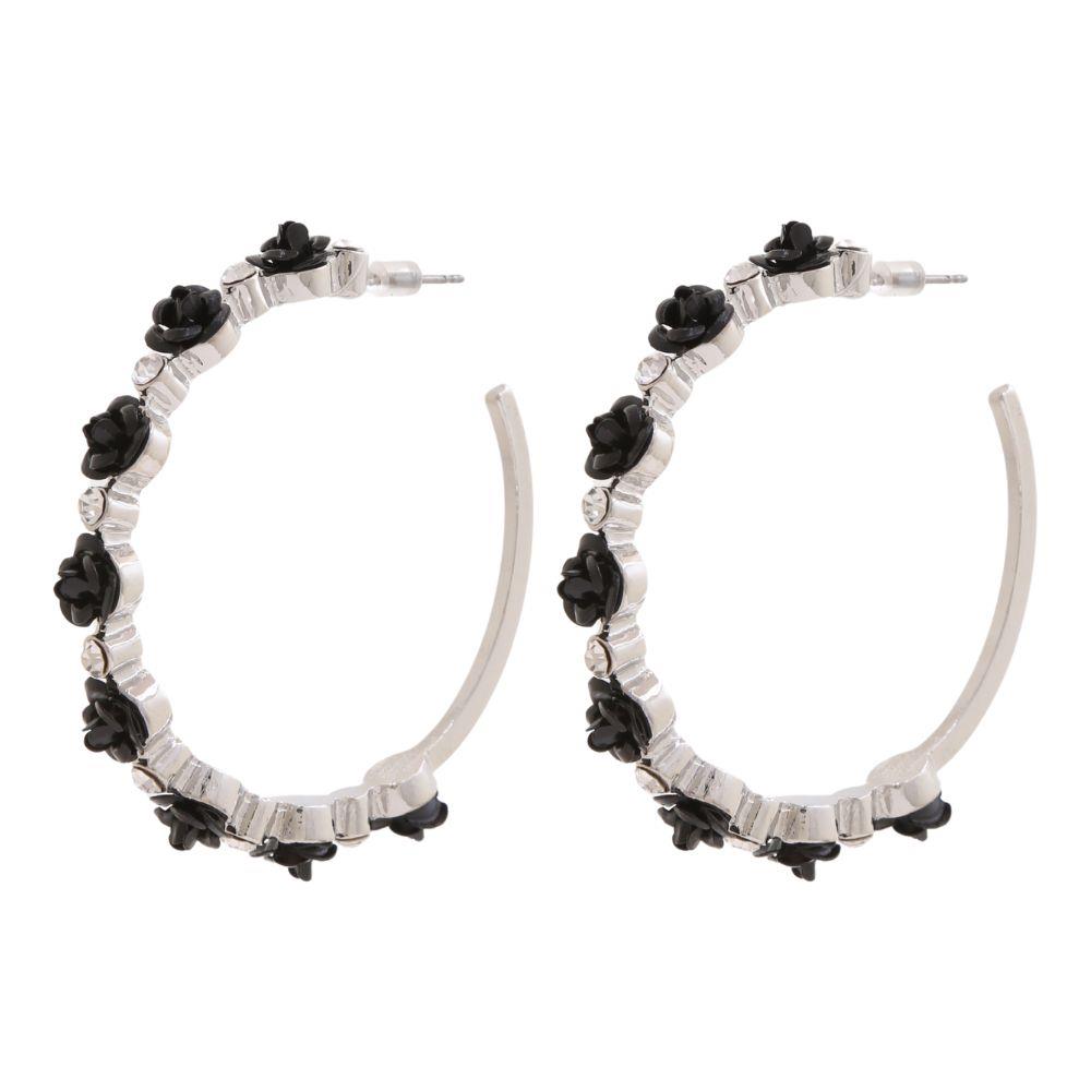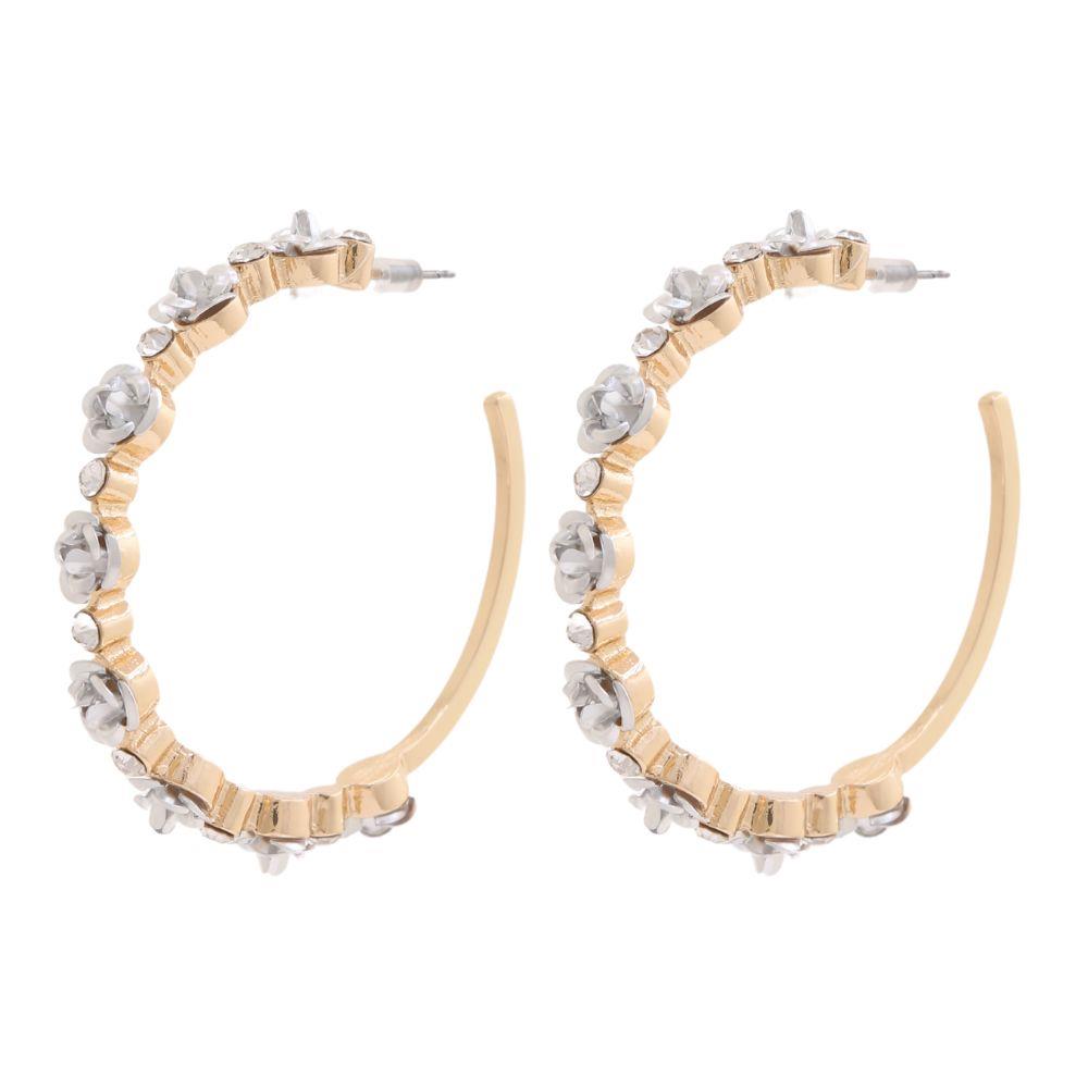 SDJ FLOWER RHINESTONE C HOOP EARRING