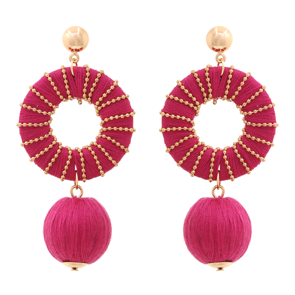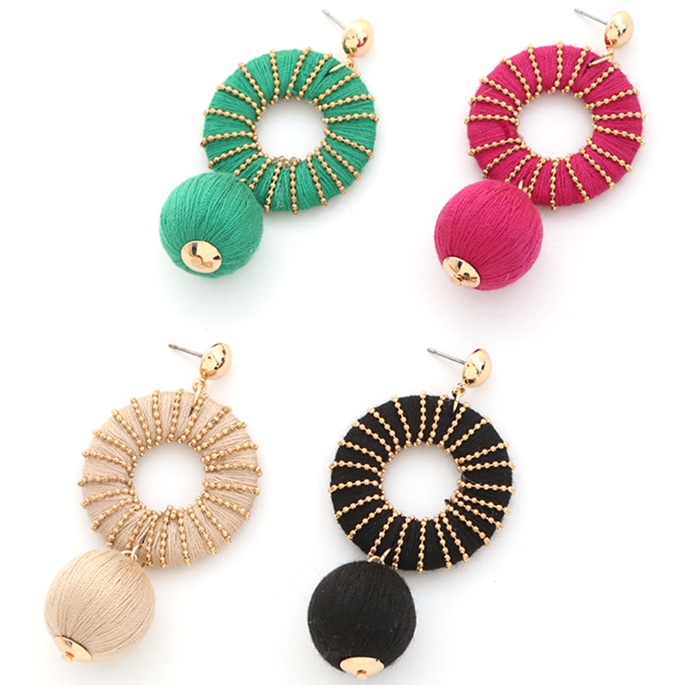 THREAD WRAPPING ROUND BALL DANGLE EARRING