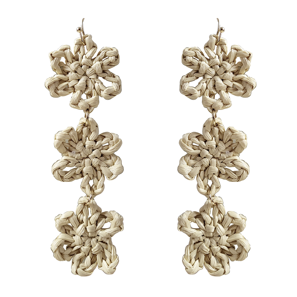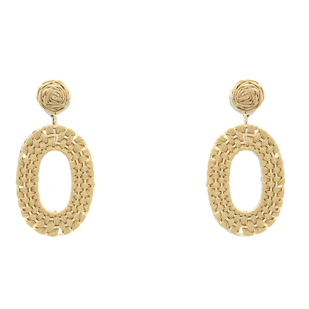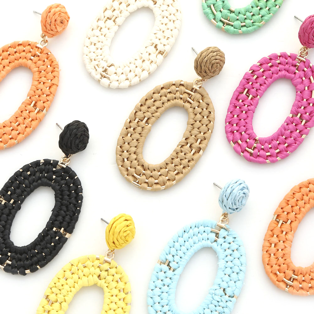 RAFFIA DOUBLE CIRCLE DANGLE EARRING