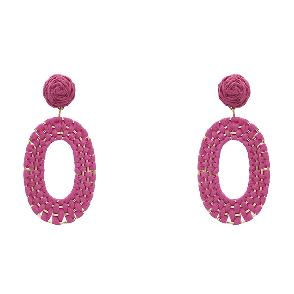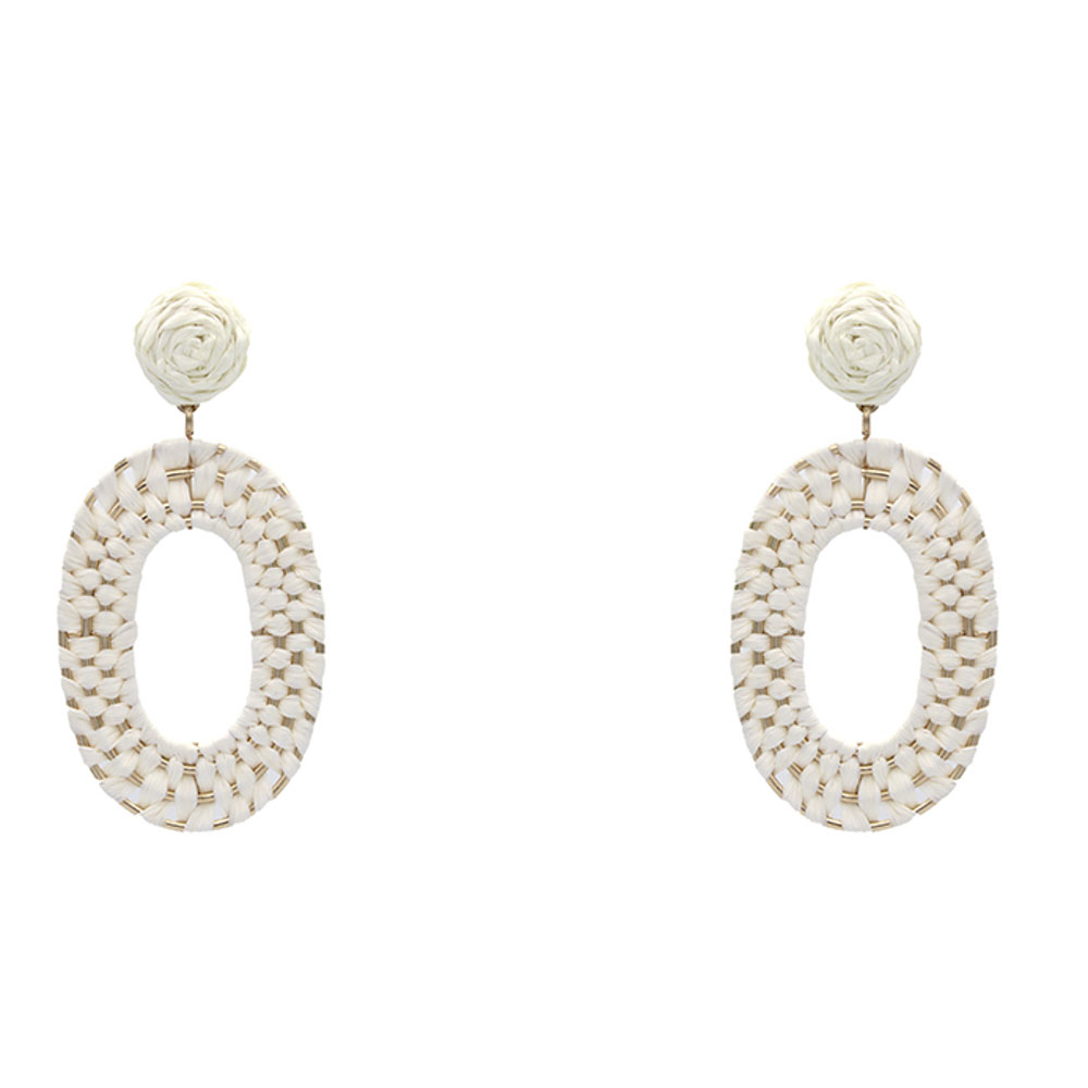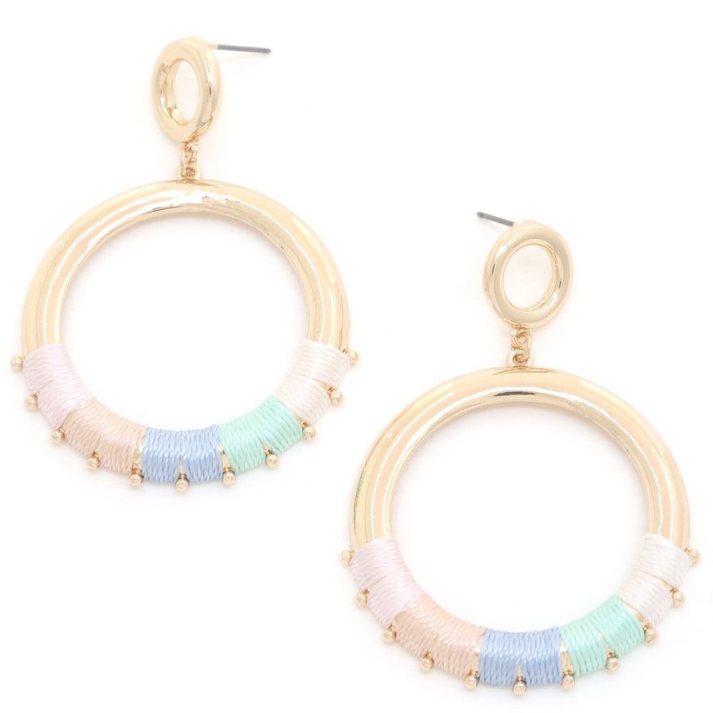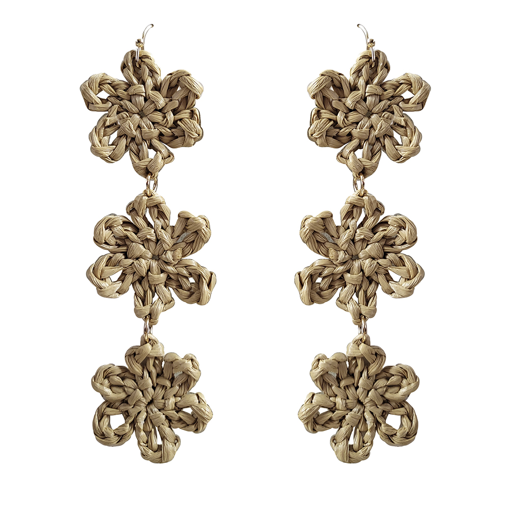 RAFFIA DOUBLE CIRCLE DANGLE EARRING