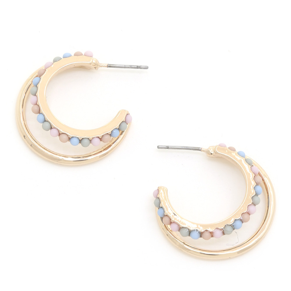 RAFFIA BOW SEED BEAD OPEN HOOP EARRING