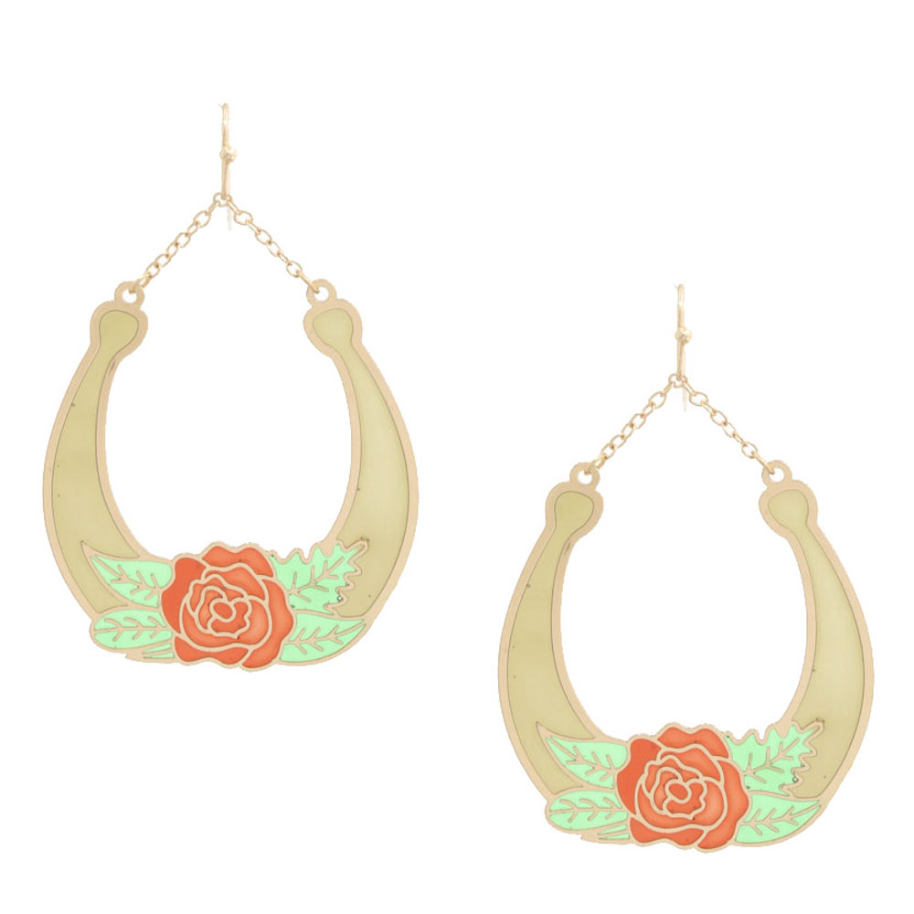 SODAJO GOLD DIPPED BRASS METAL FLOWER C HOOP EARRING