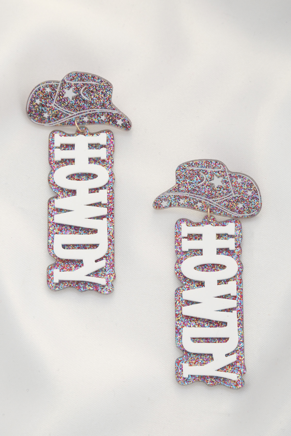 HOWDY Y`ALL GLITTER DANGLE EARRING