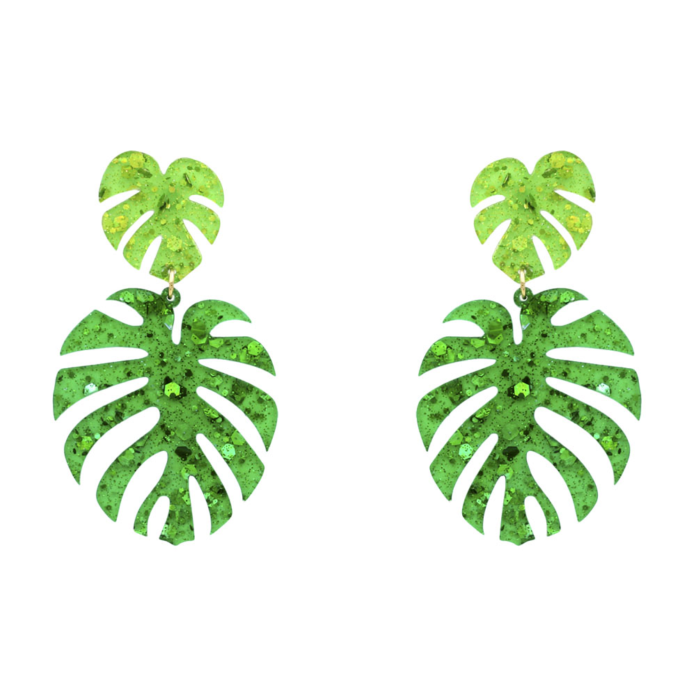 GLITTER TROPICAL LEAF DANGLE EARRING