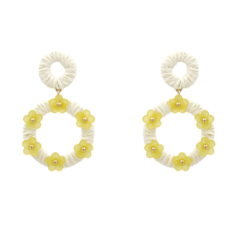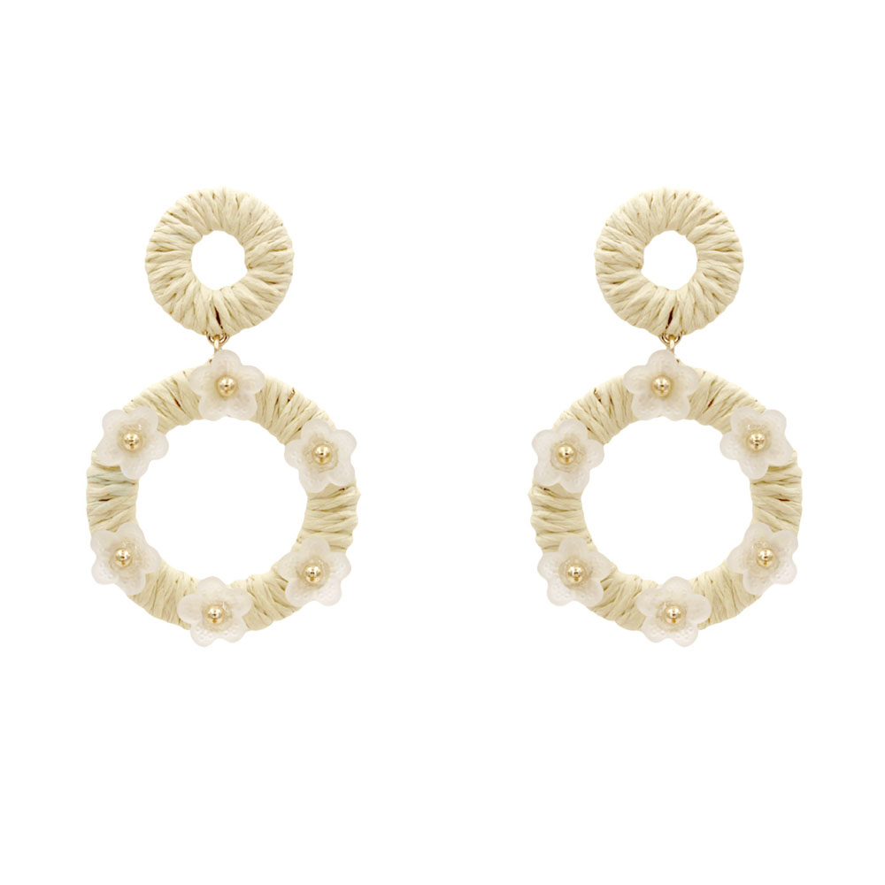 ROUND RAFFIA FLOWER DANGLE EARRING