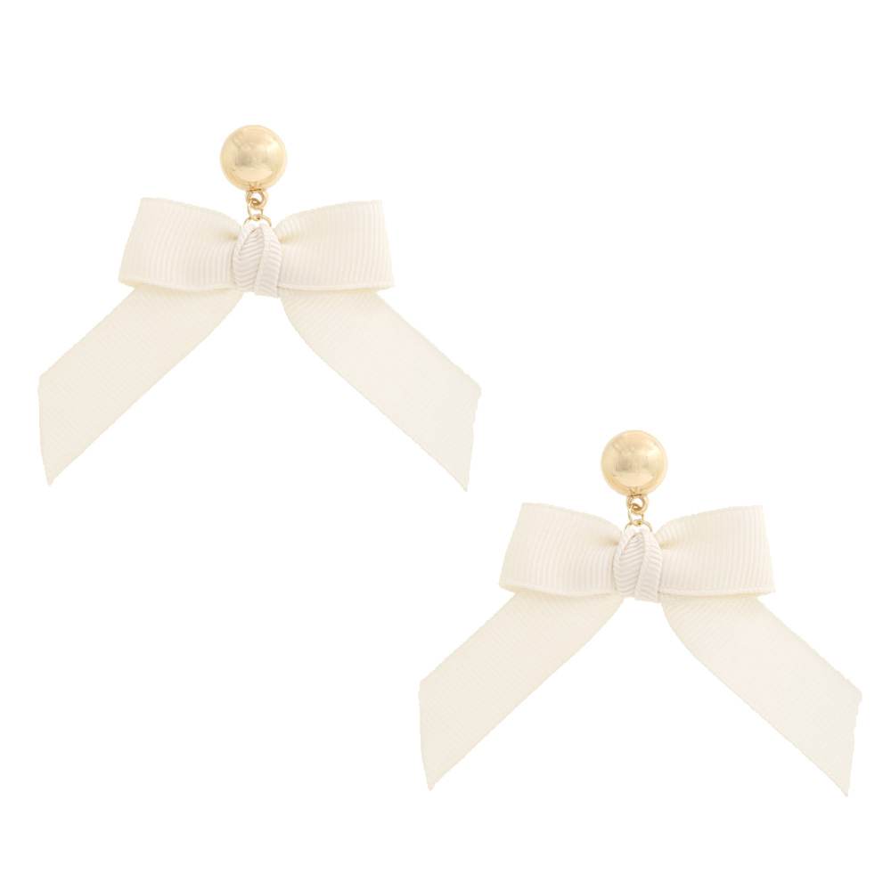 METAL HOOP RIBBON BOW DANGLE EARRING