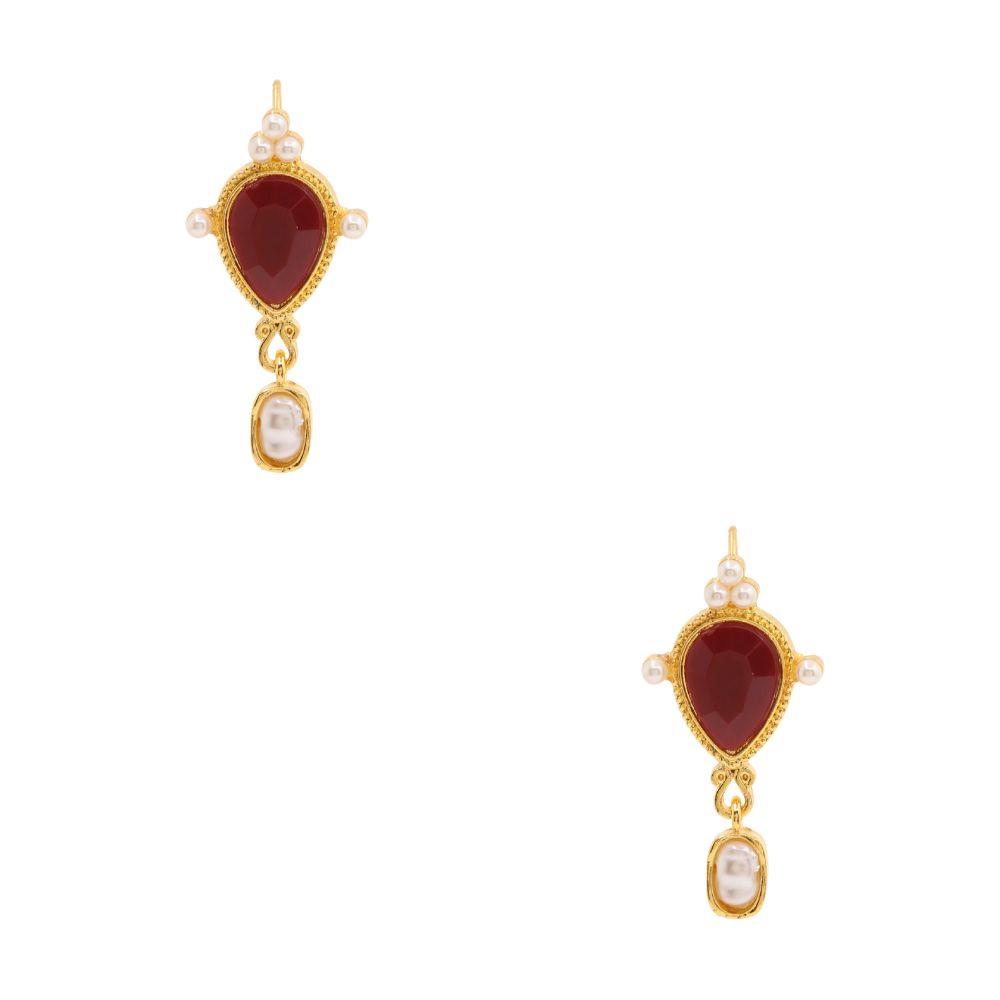 TEARDROP STONE DAINTY PEARL BEAD DANGLE EARRING