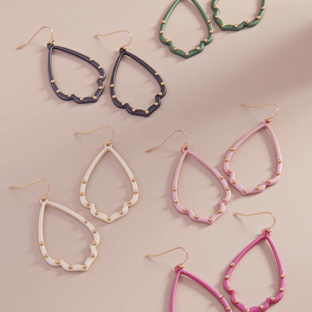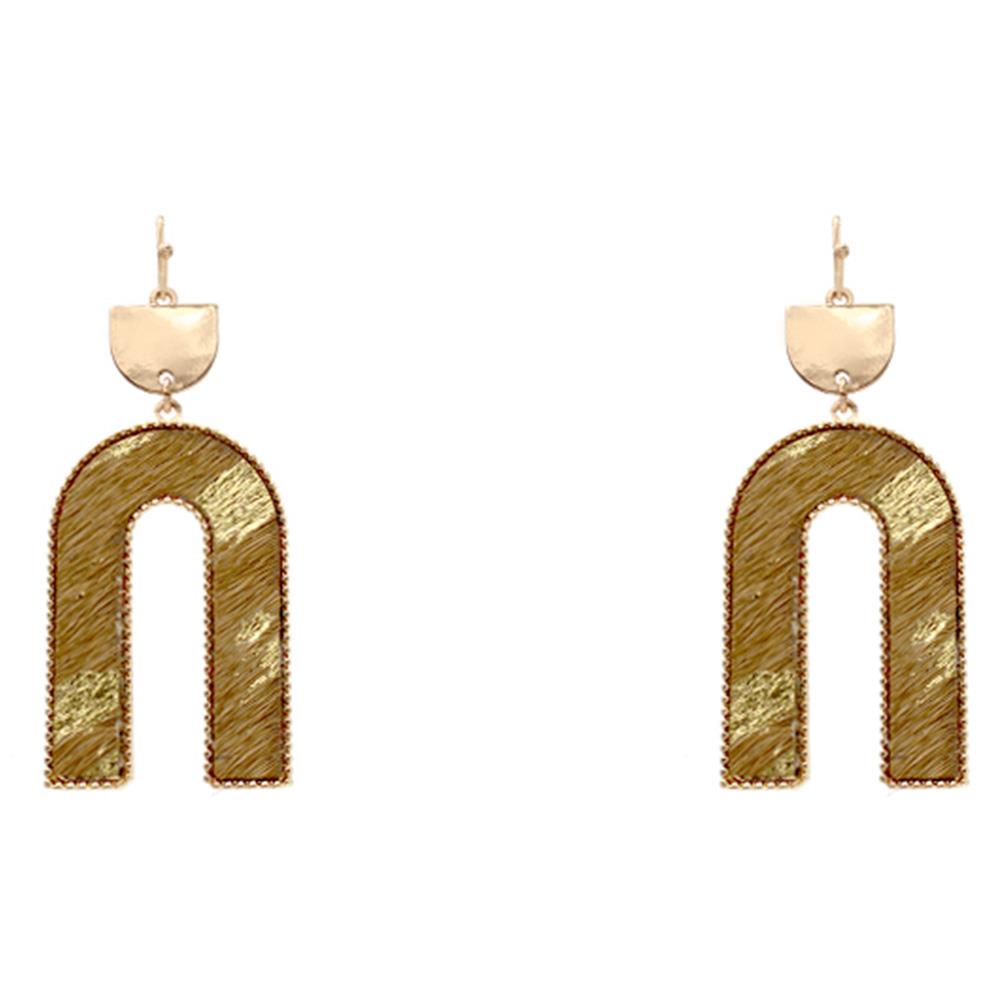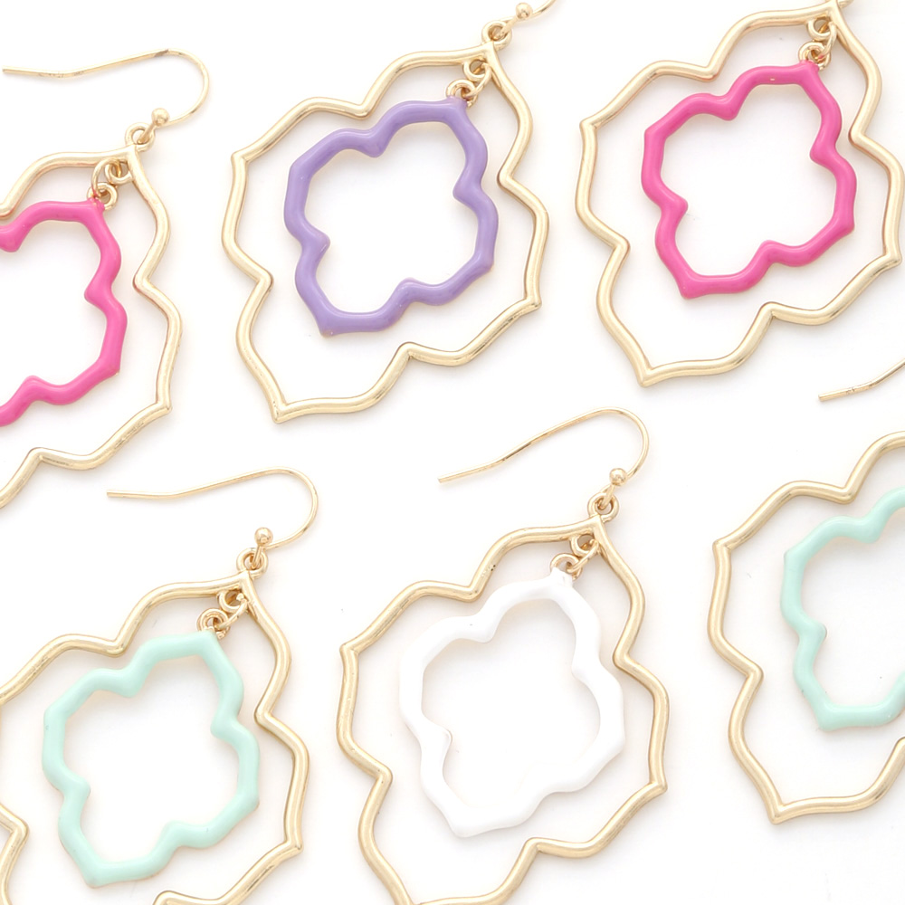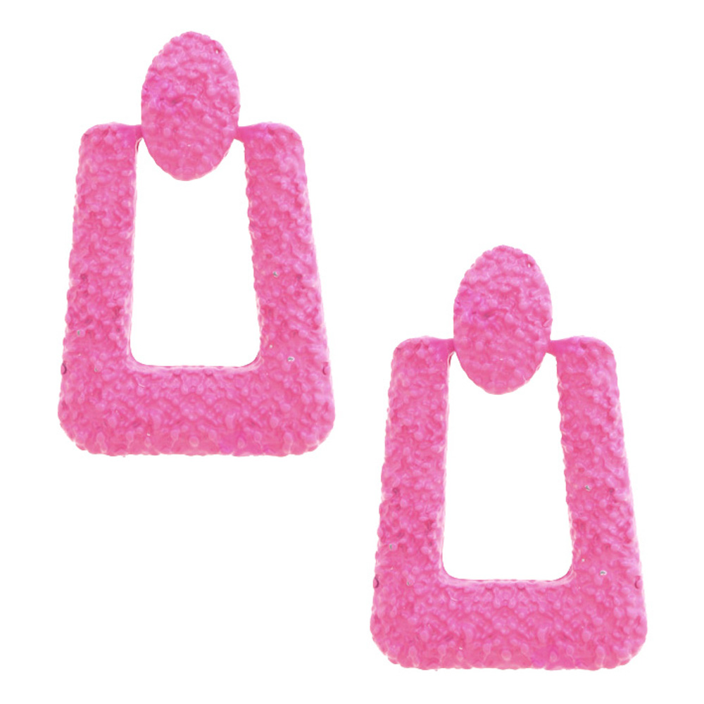 COLOR METAL TEXTURED GEOMETRIC SHAPE EARRING