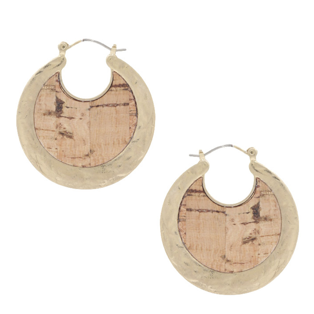HEXAGON HAMMERED METAL POST HOOP EARRING