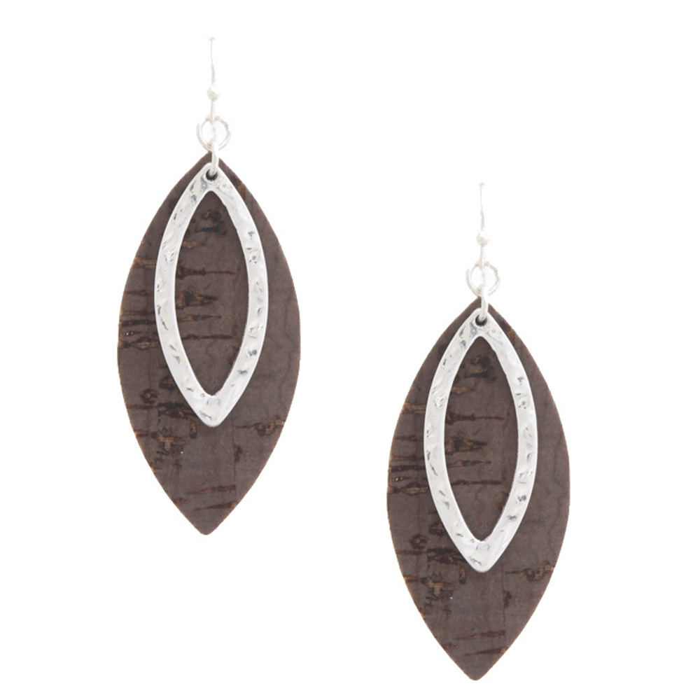 SATIN METAL BALL AC TEARDROP WOOD EARRING