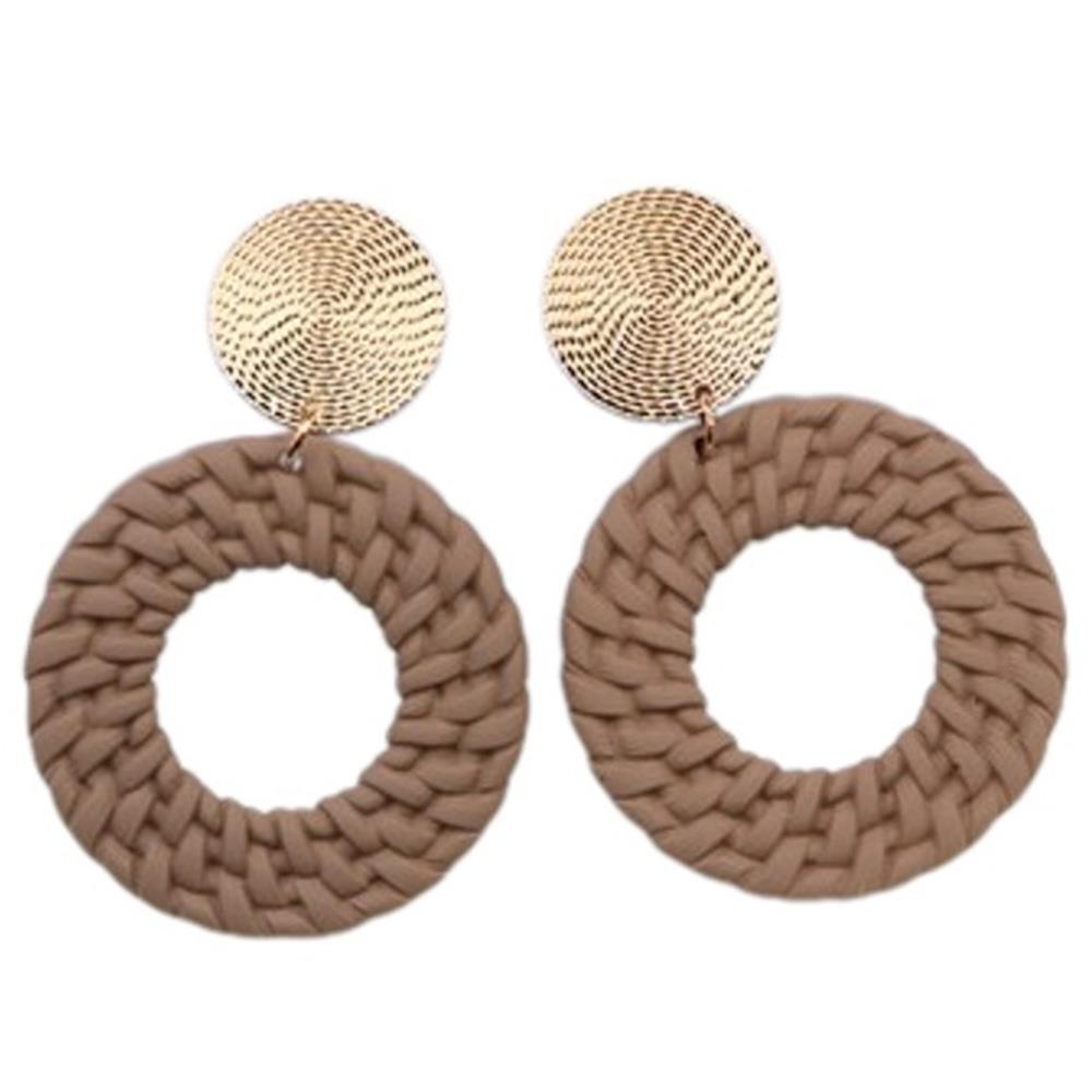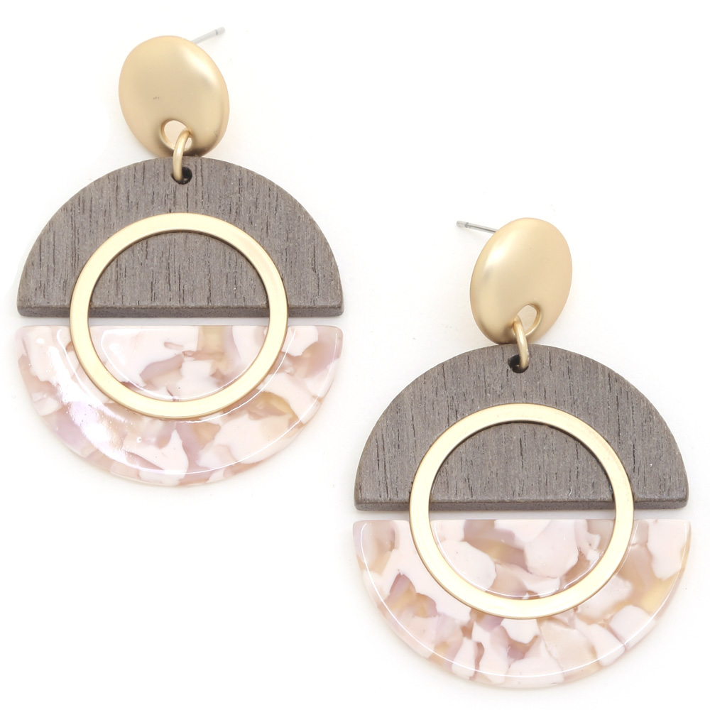 HALF WOOD HALF ACETATE ROUND DANGLE EARRING