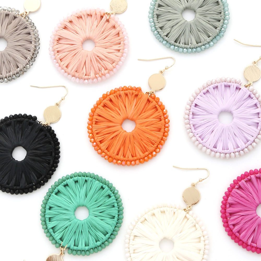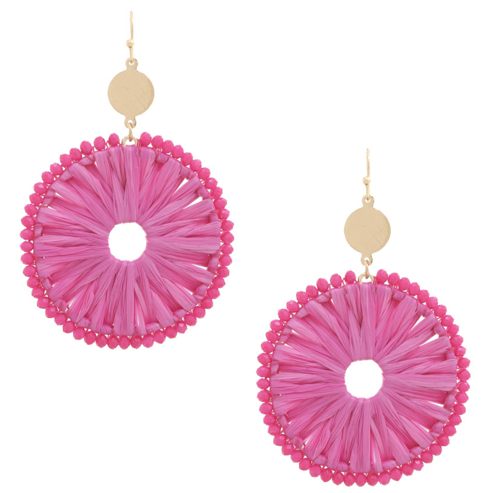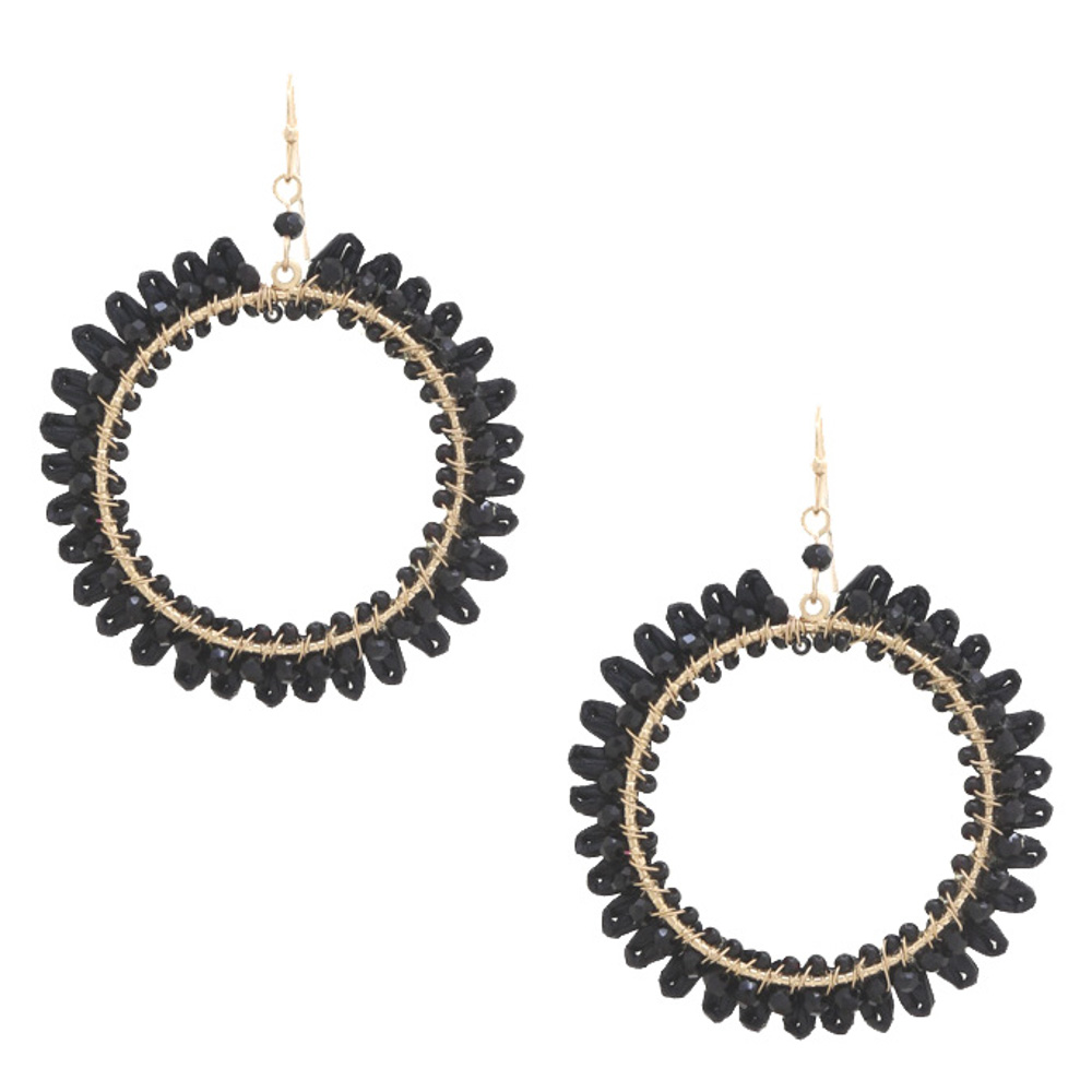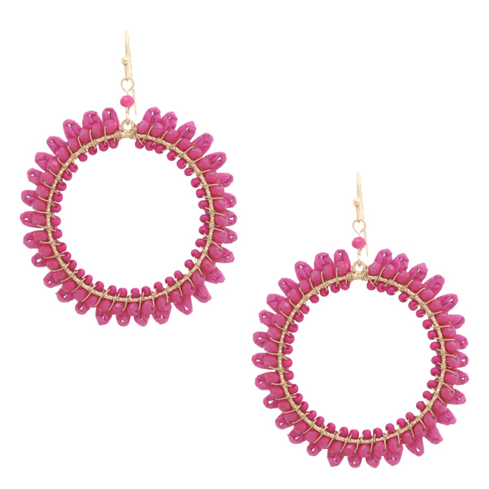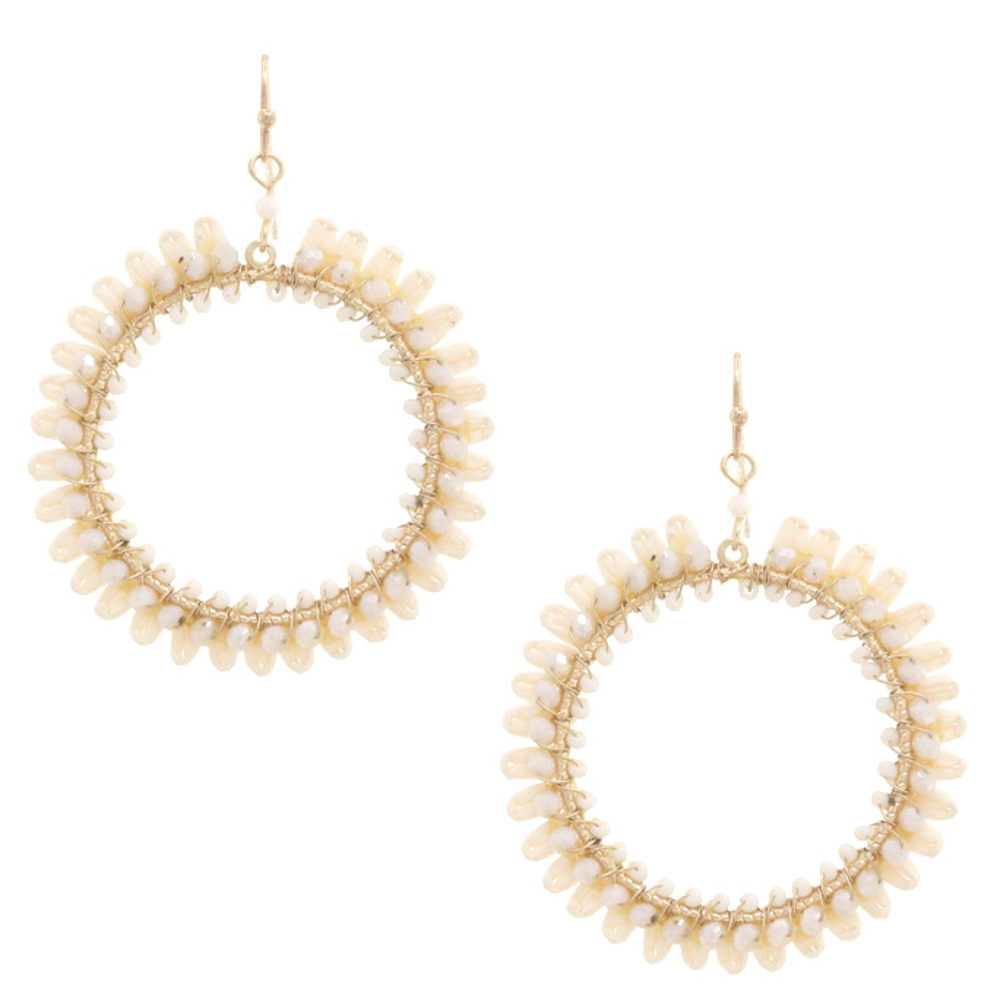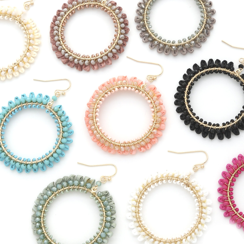 SEED BEAD HAPPY FACE ROUND DANGLE EARRING