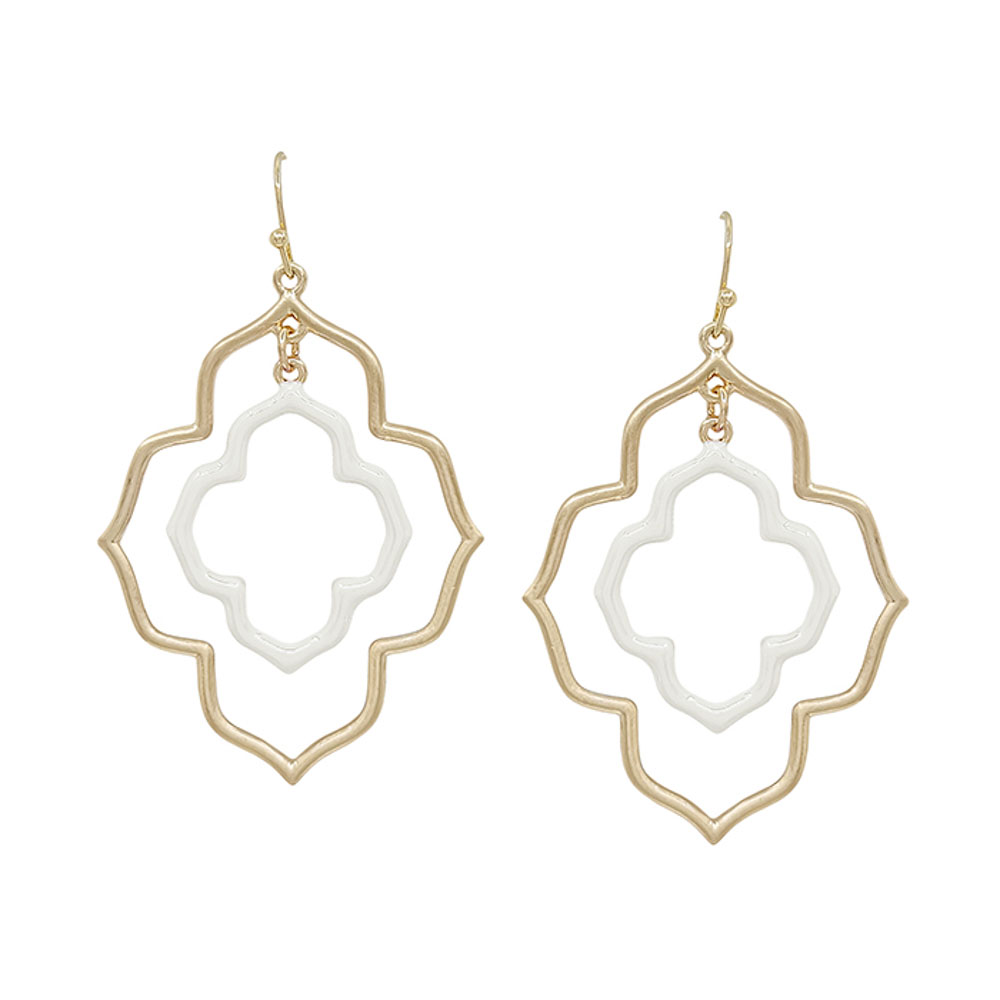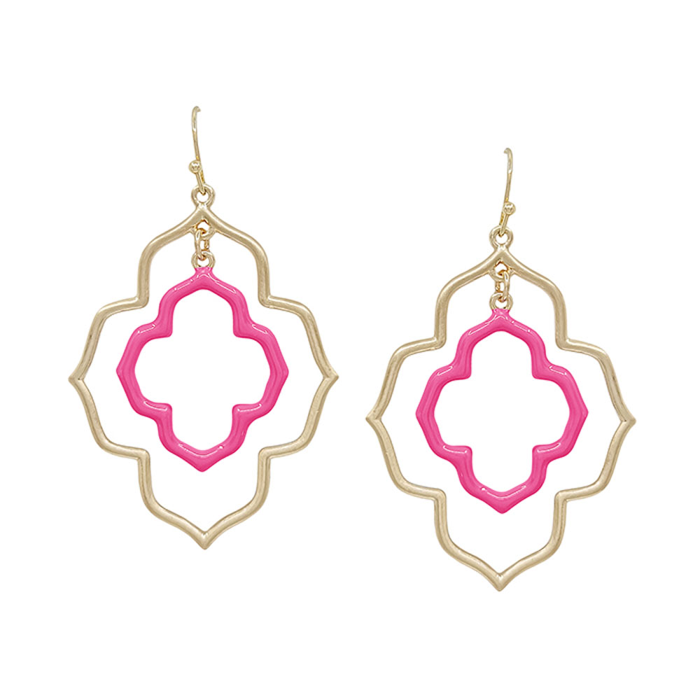 DOUBLE FLOWER SHAPE COLOR EPOXY ACCENT EARRING