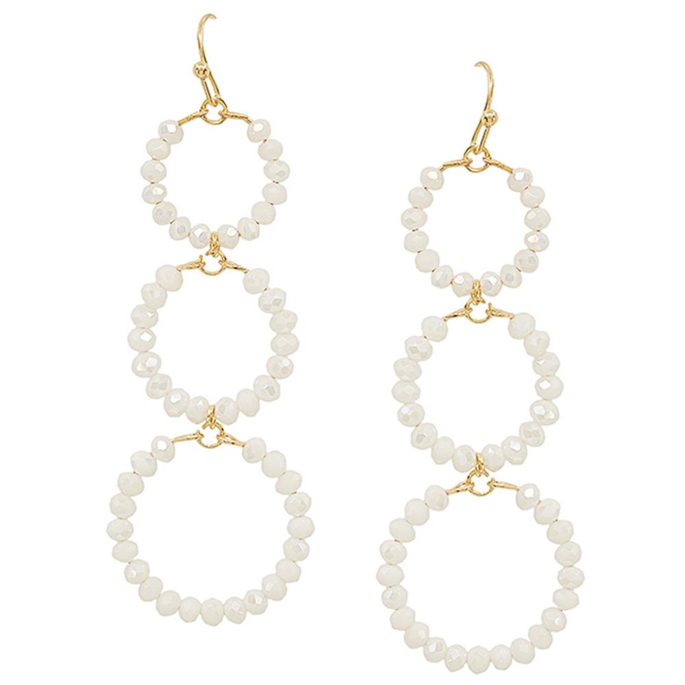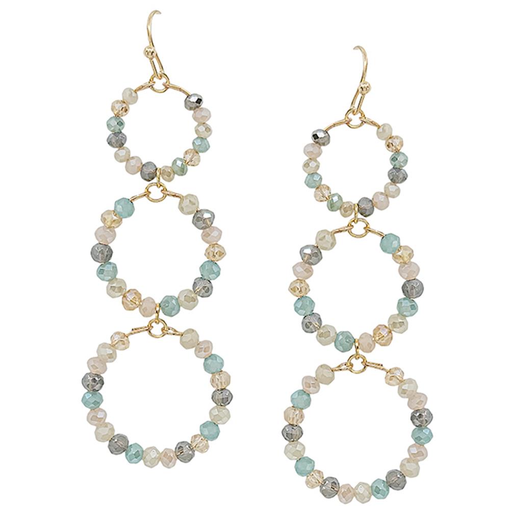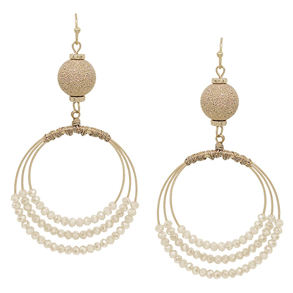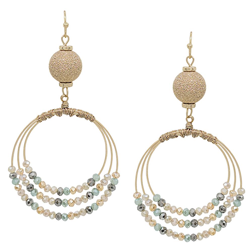 TRIPLE GLASS BEAD WIRE SATIN BALL EARRING