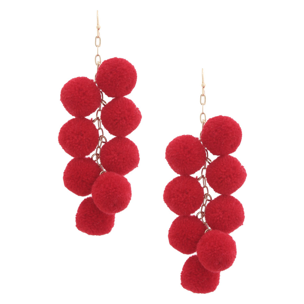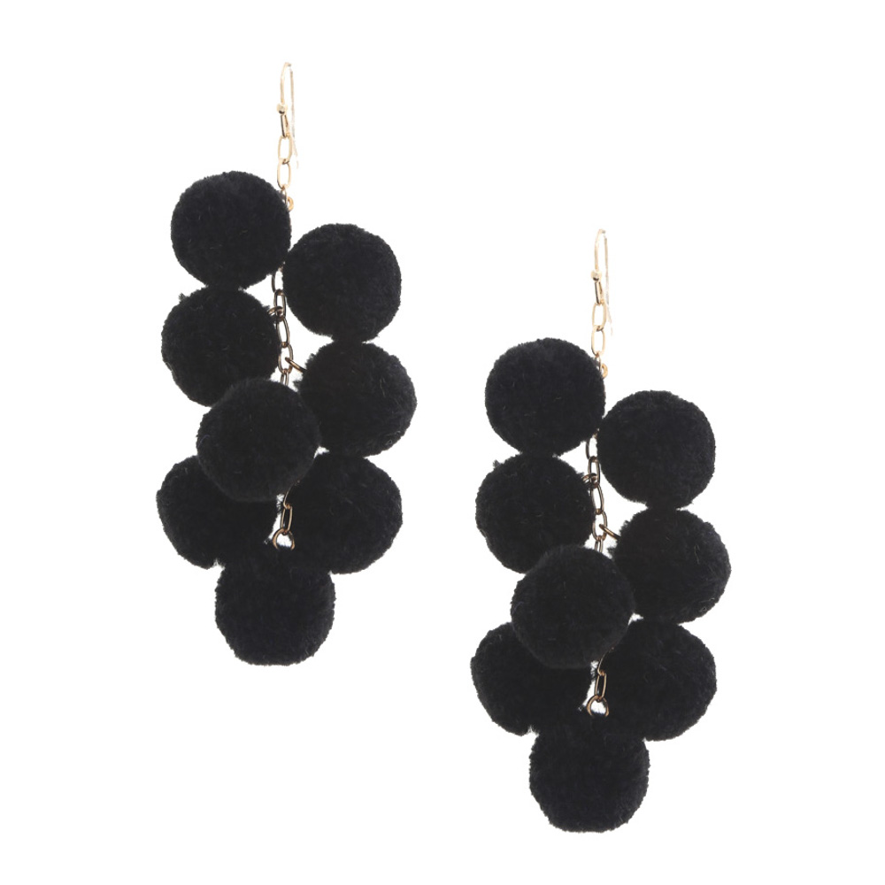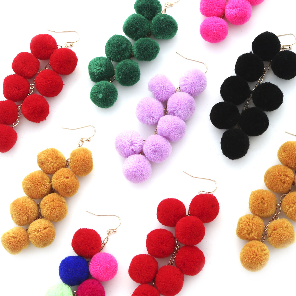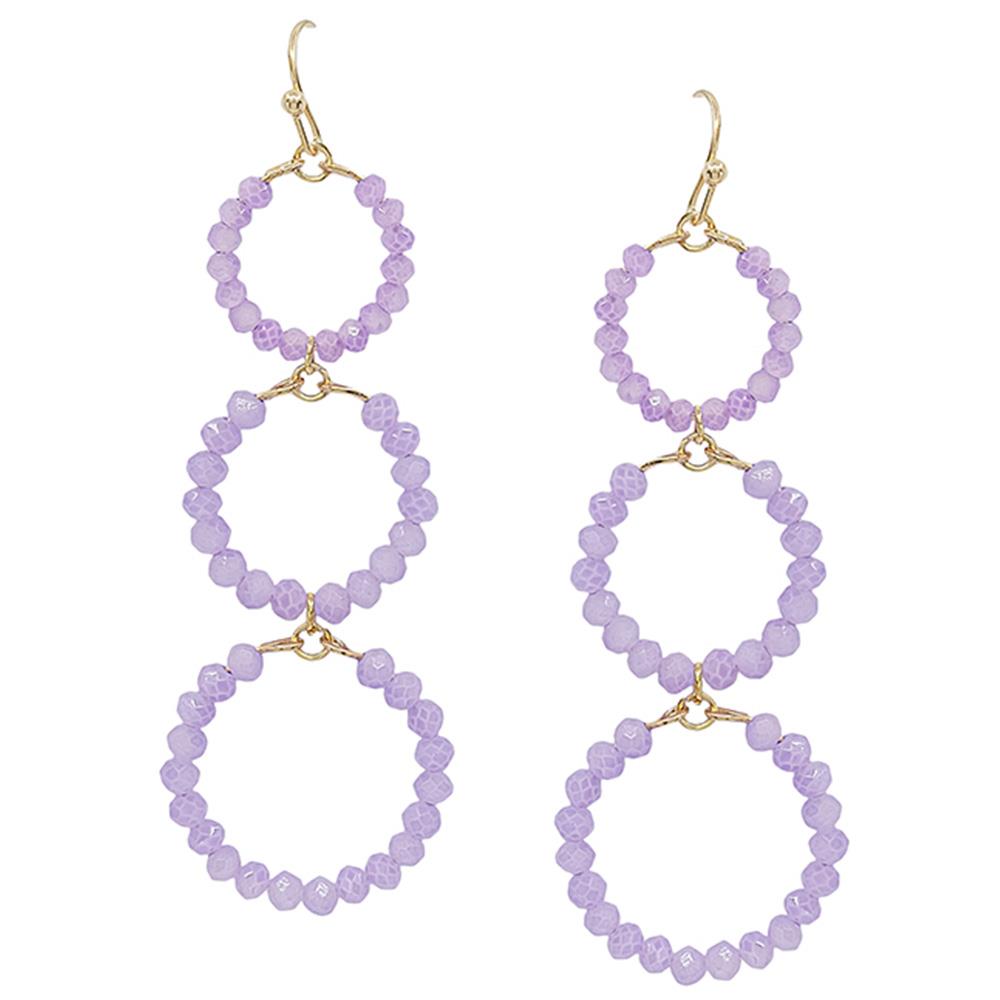 TRIPLE GLASS BEAD WIRE SATIN BALL EARRING