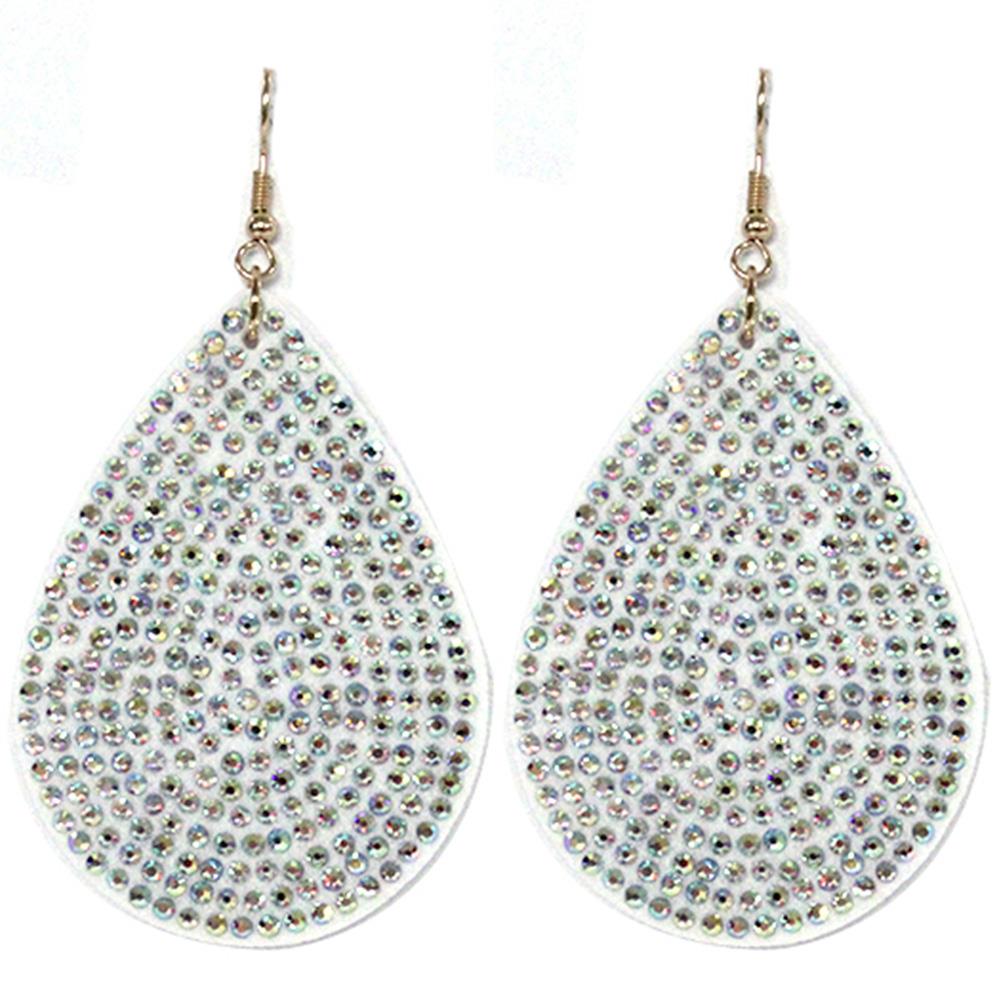 CLEAR GLASS CHARM TEARDROP WOOD EARRING