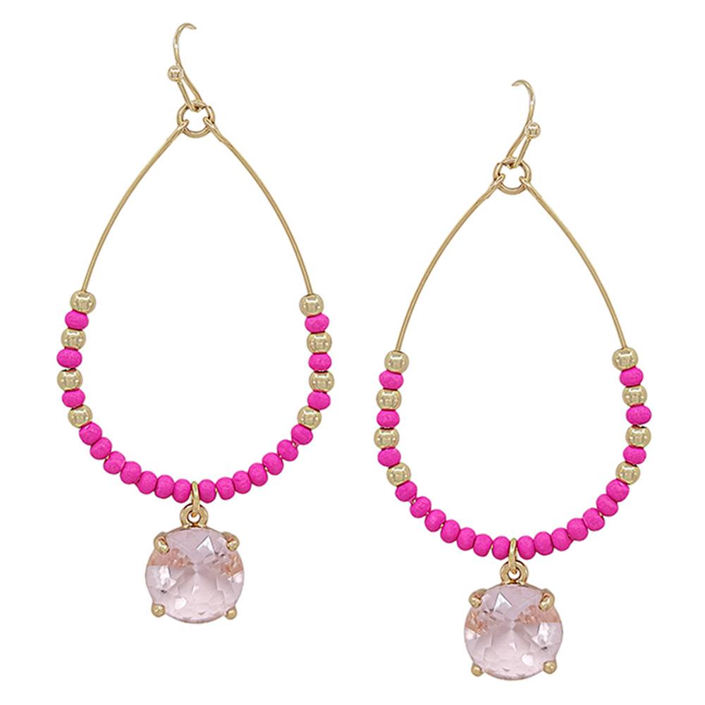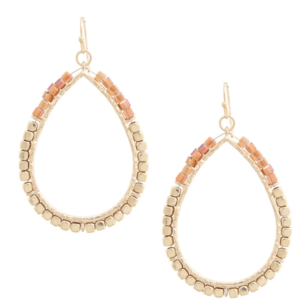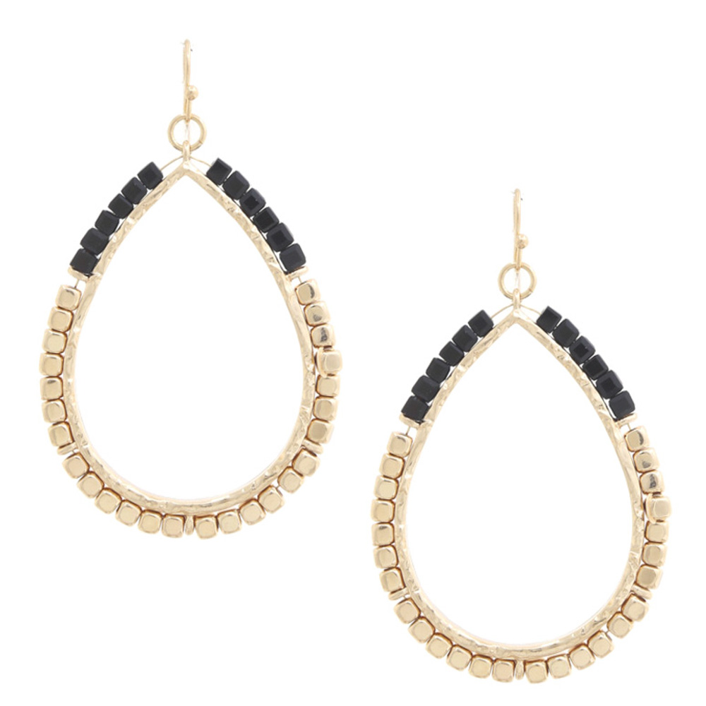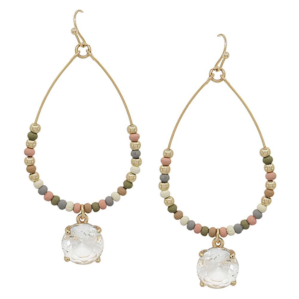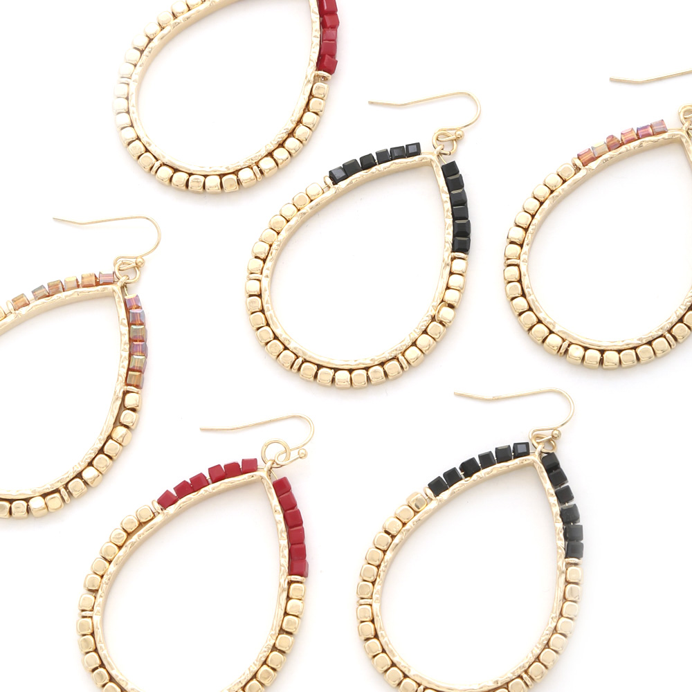 TWO TONE BEADED TEARDROP DANGLE EARRING