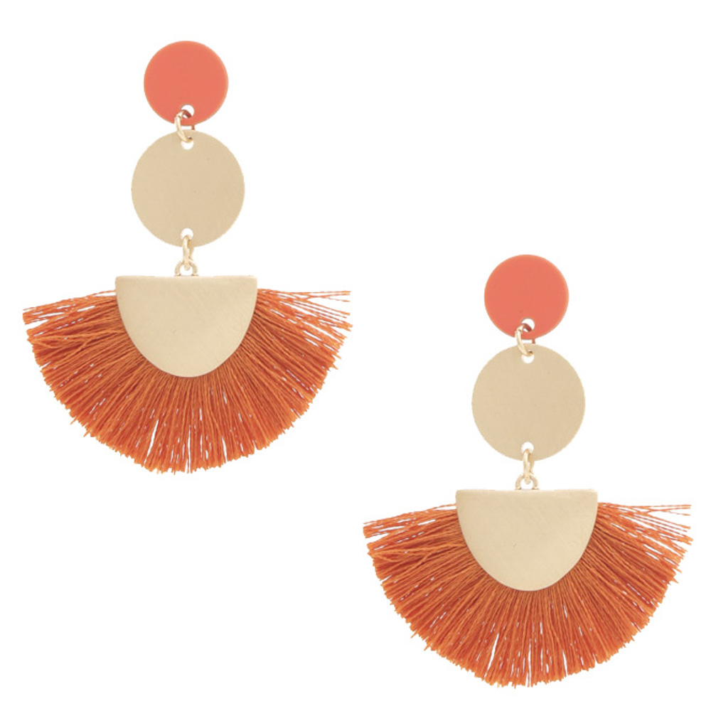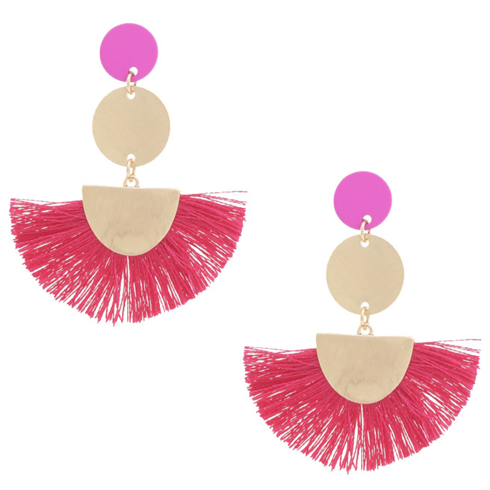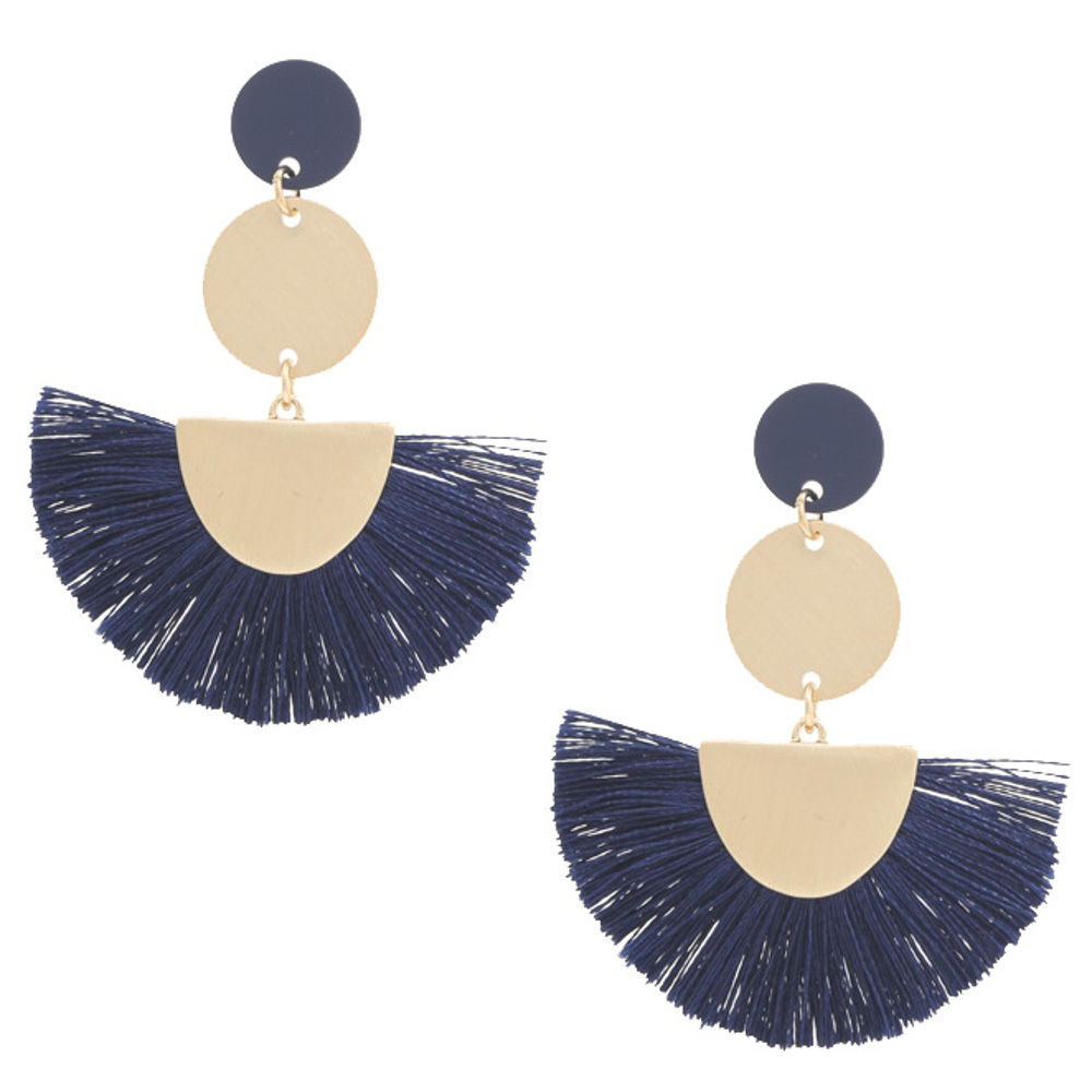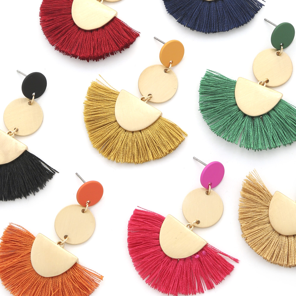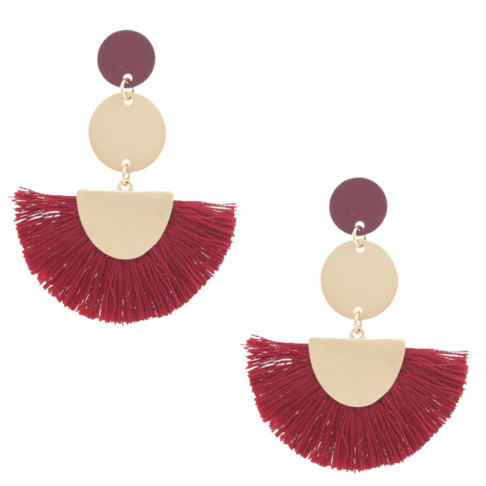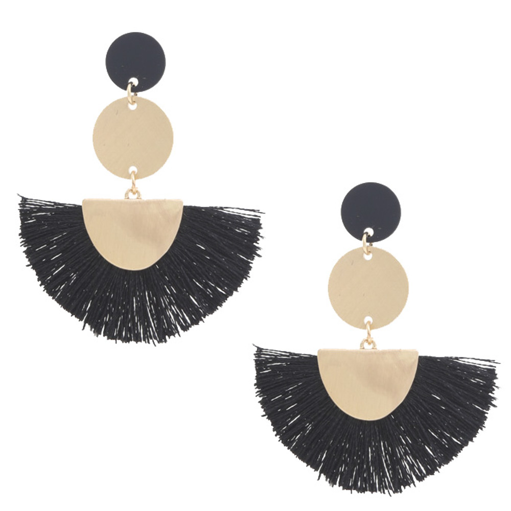 DOUBLE CIRCLE FAN TASSEL DANGLE EARRING