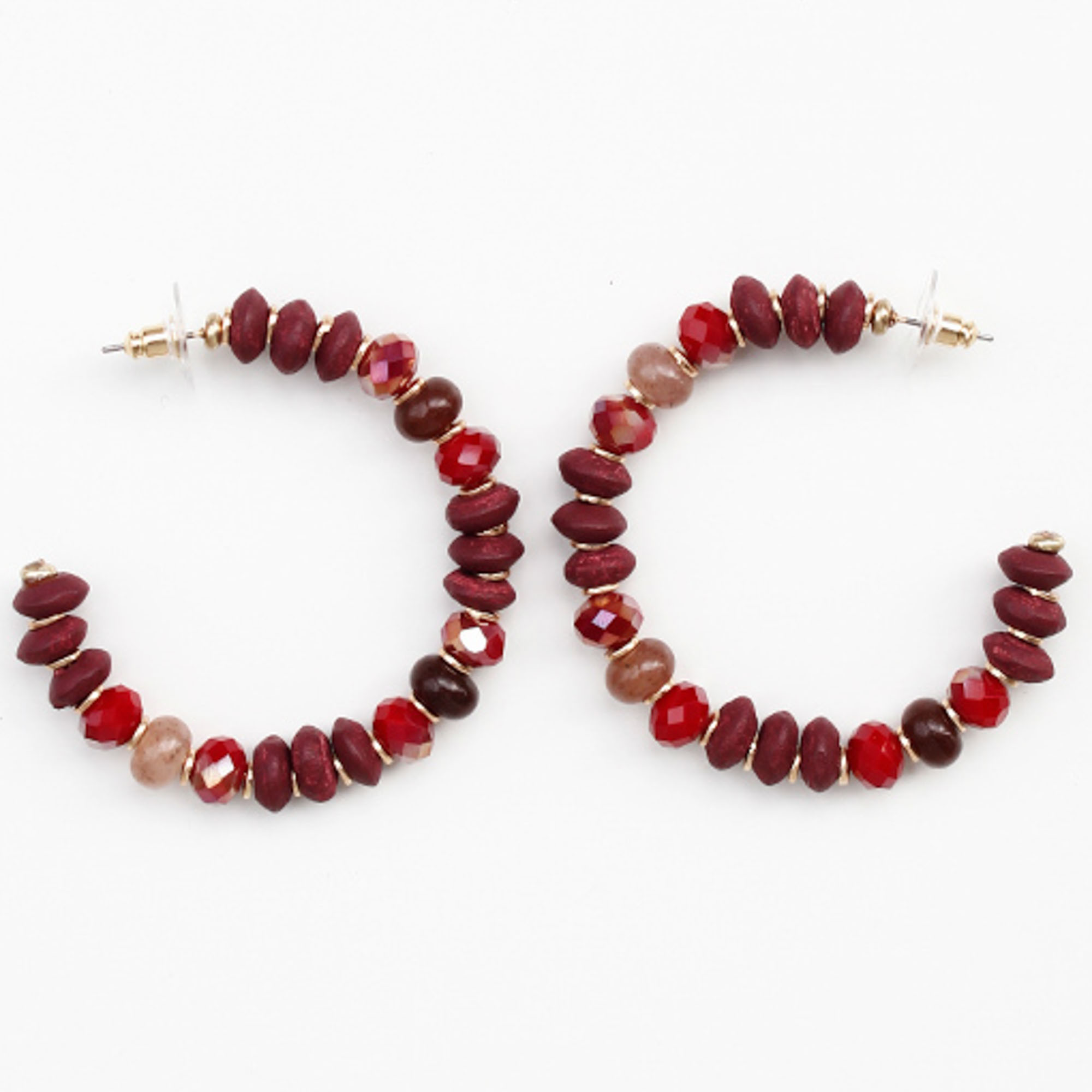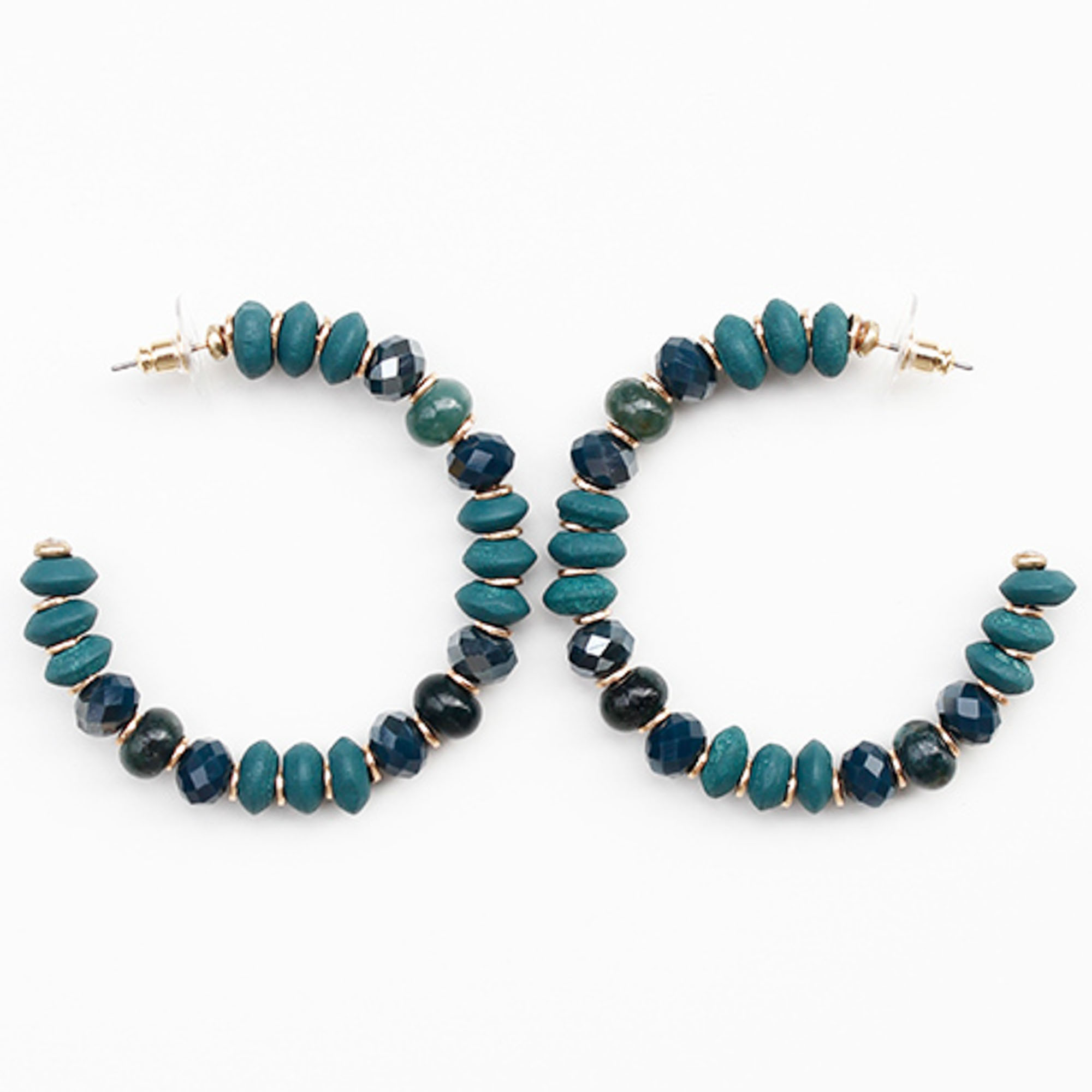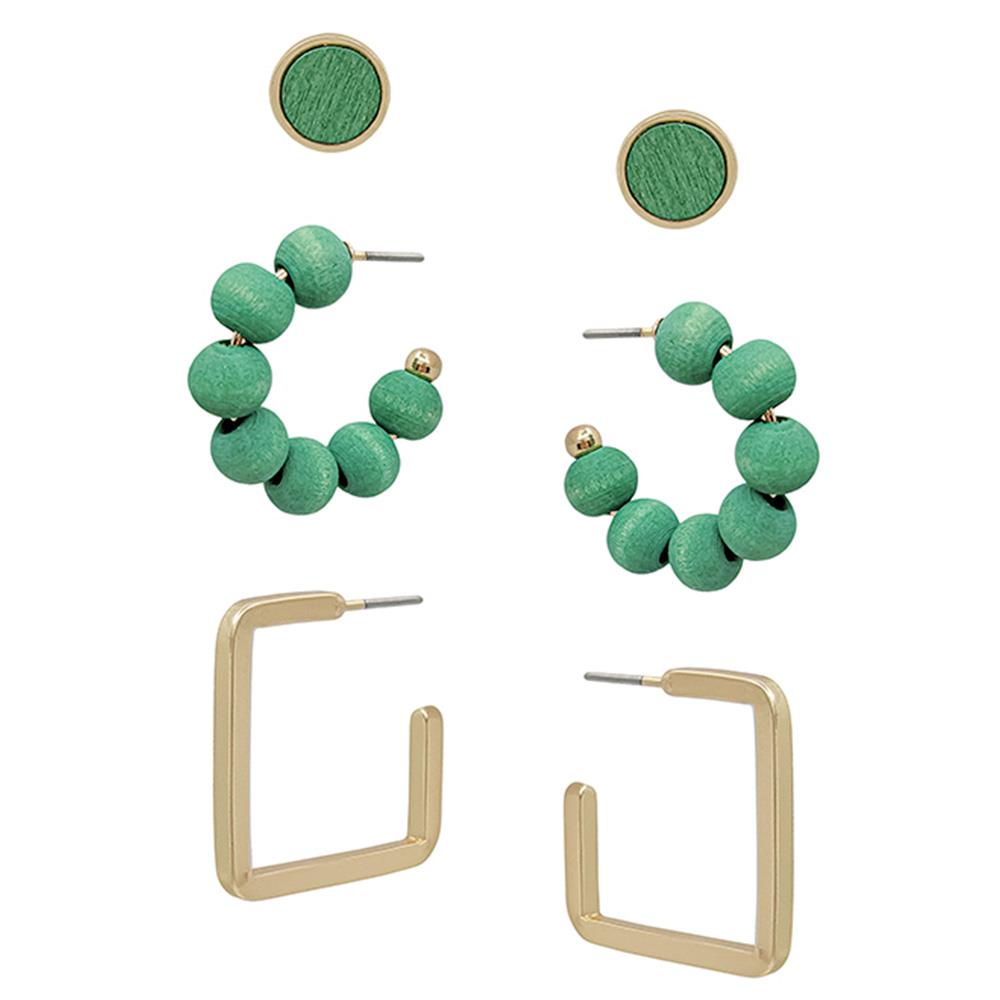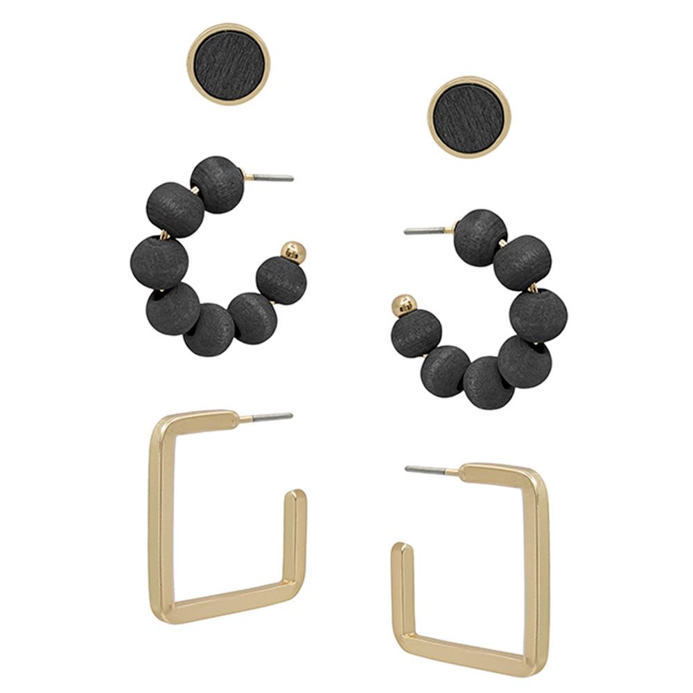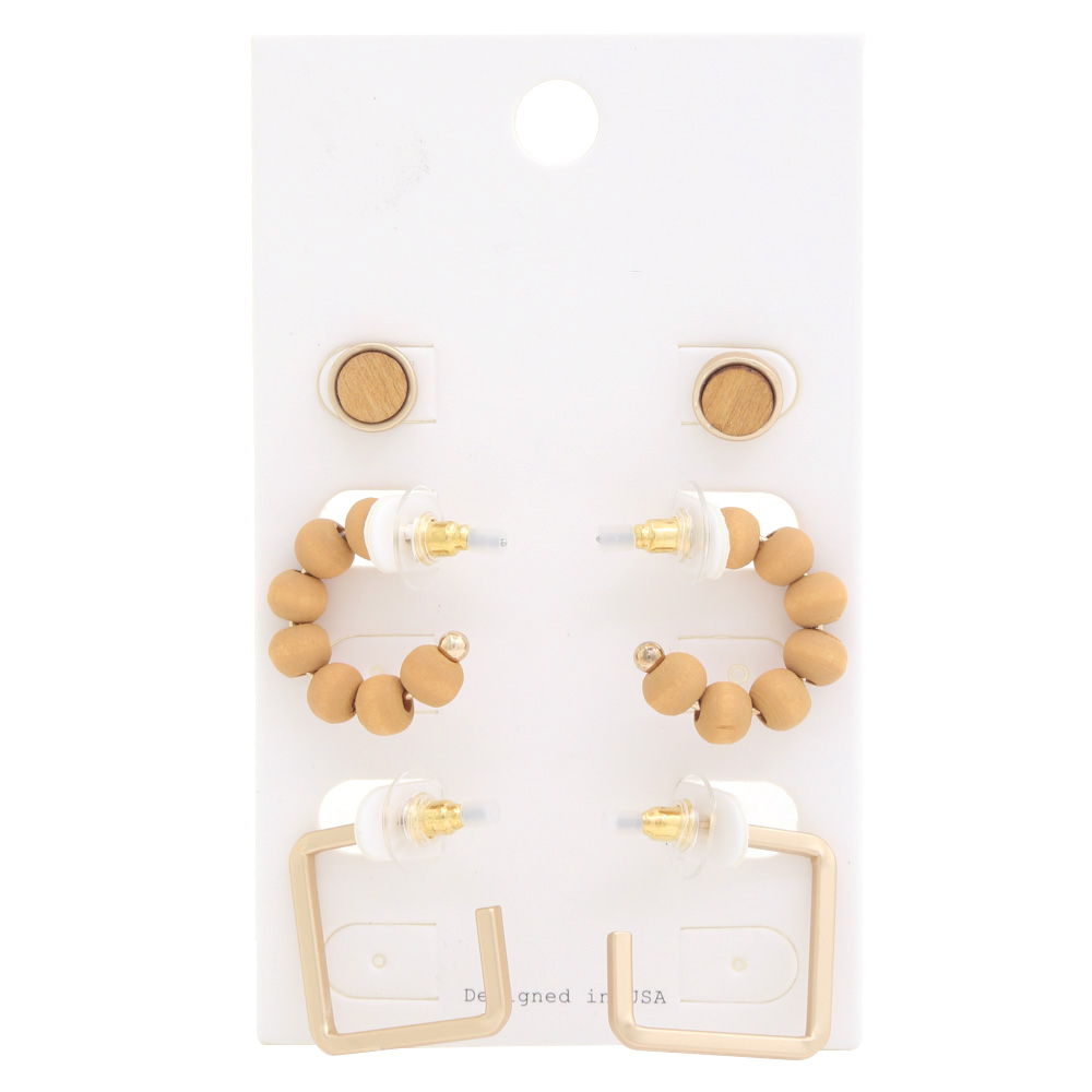 WOOD POST BALL HOOP SQUARE HOOP EARRING SET