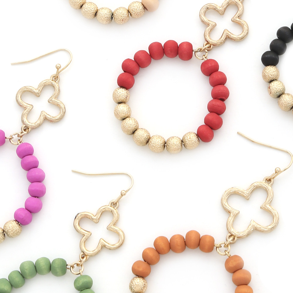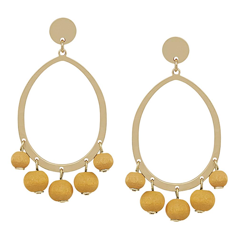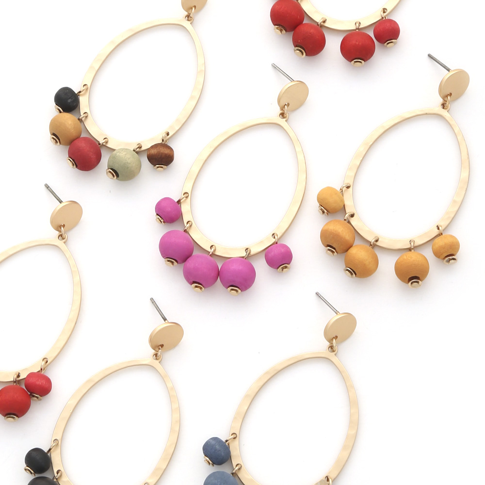 GEO METAL POST WOOD BEAD CHARM EARRING