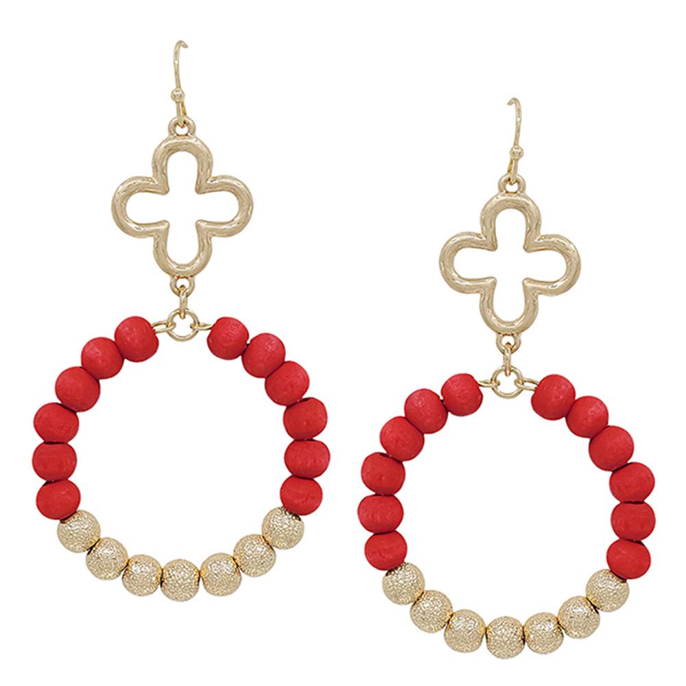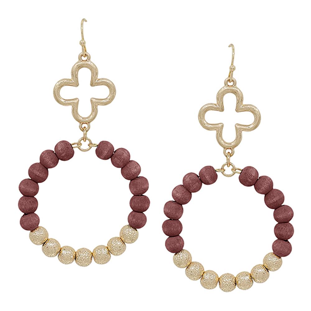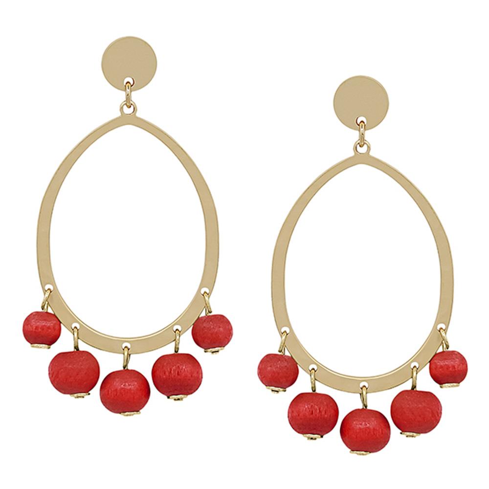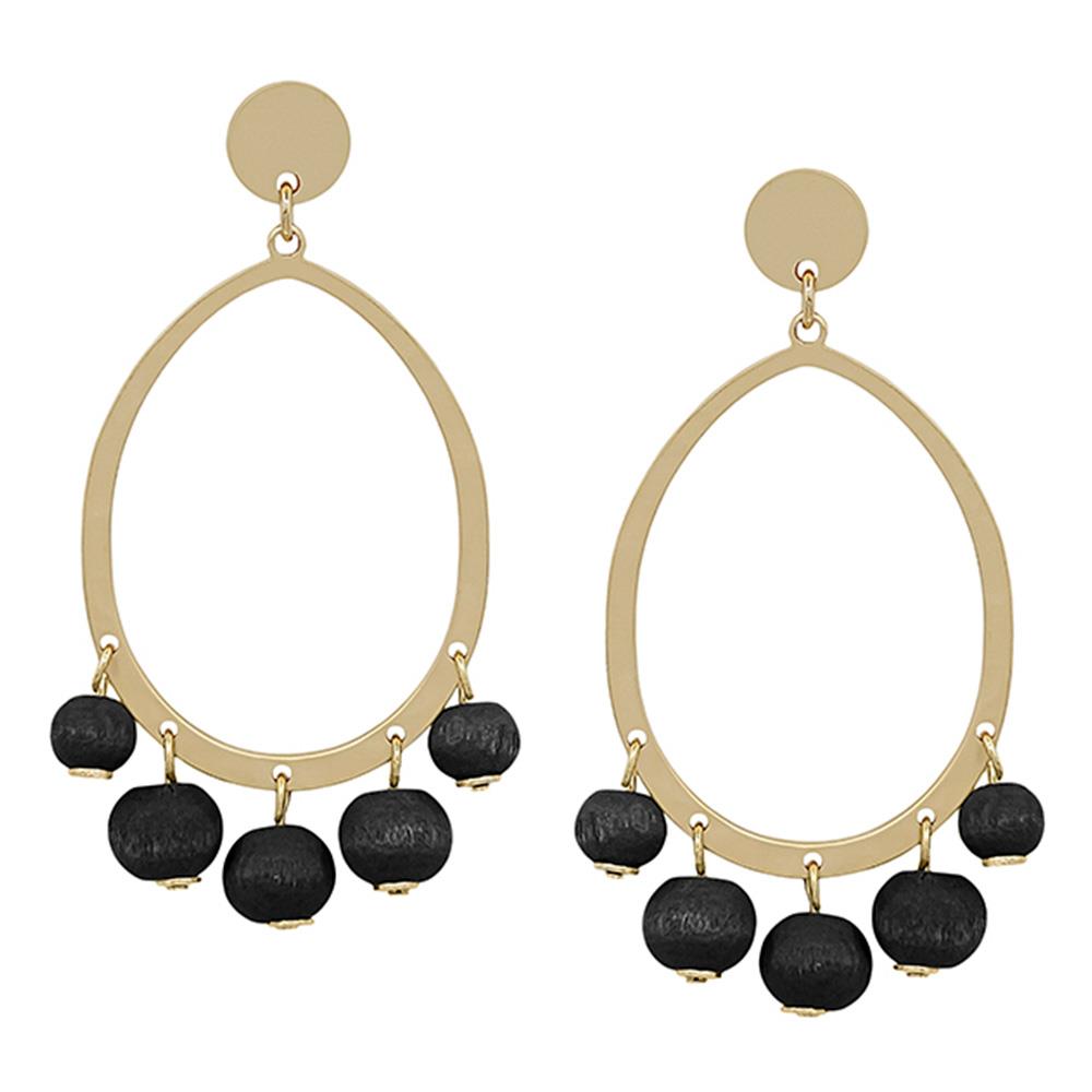 GEO METAL POST WOOD BEAD CHARM EARRING