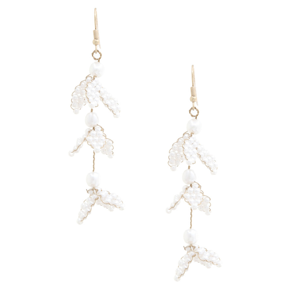 SEED BEAD PEARL CLAM DROP EARRINGS
