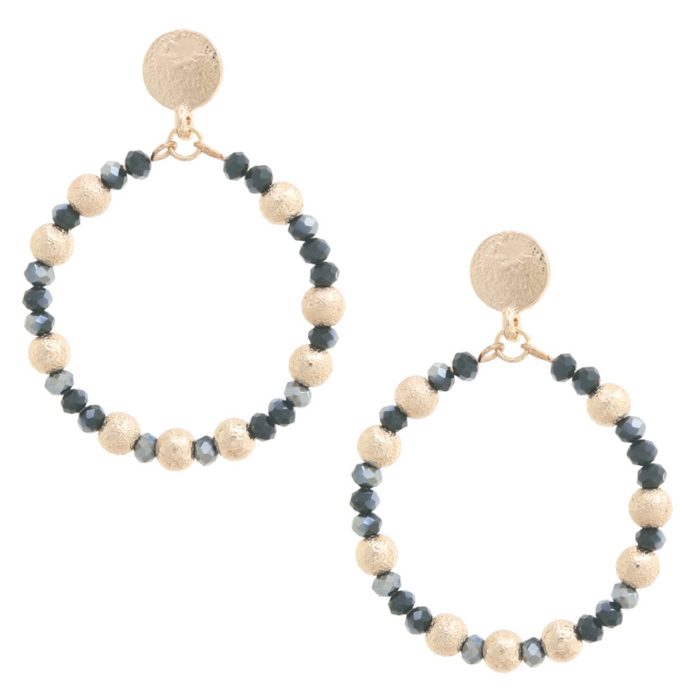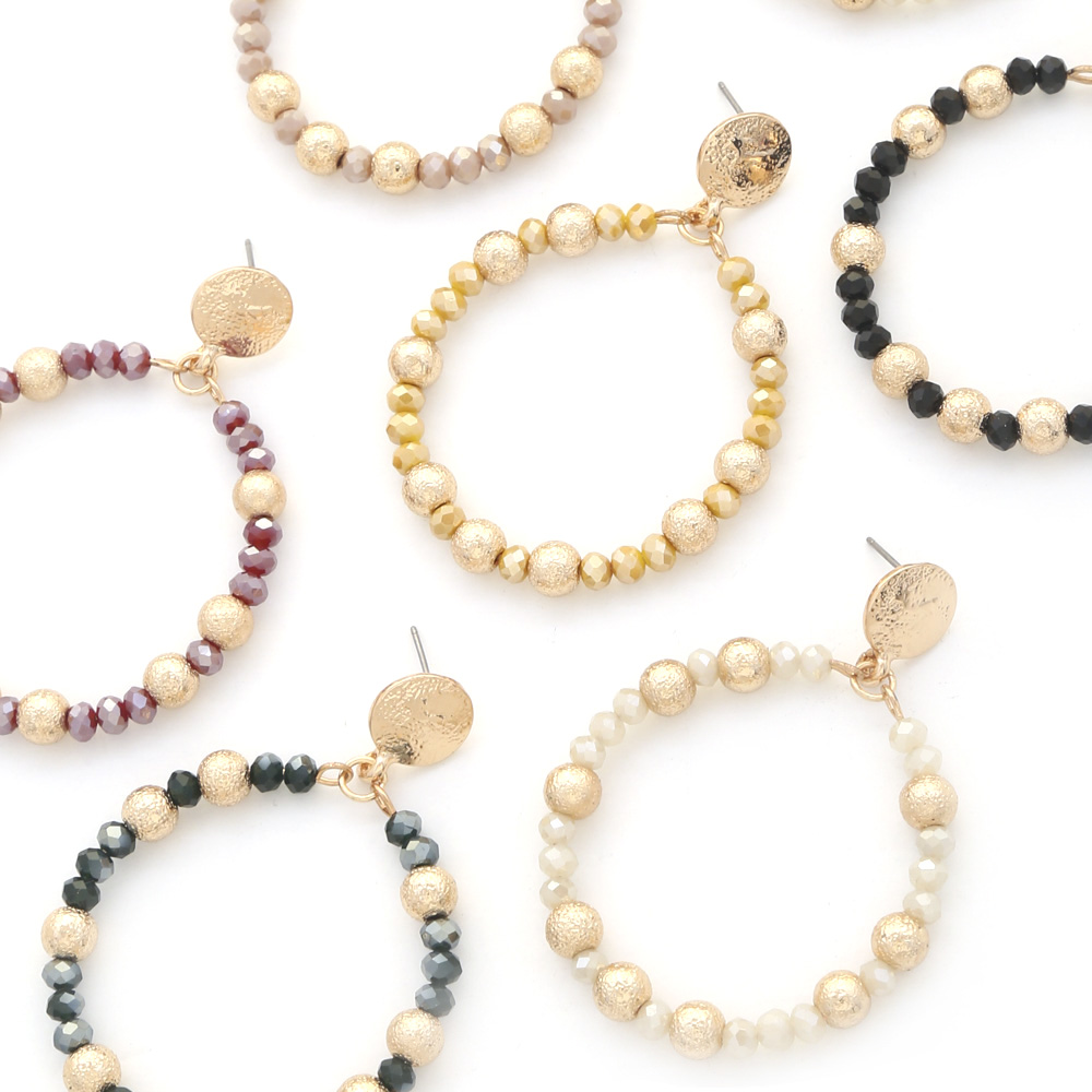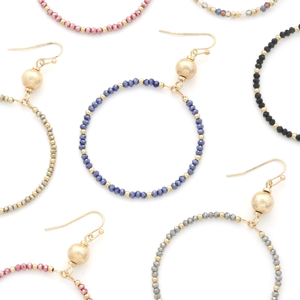 SATIN BALL ACC GLASS BEADS ROUND EARRING