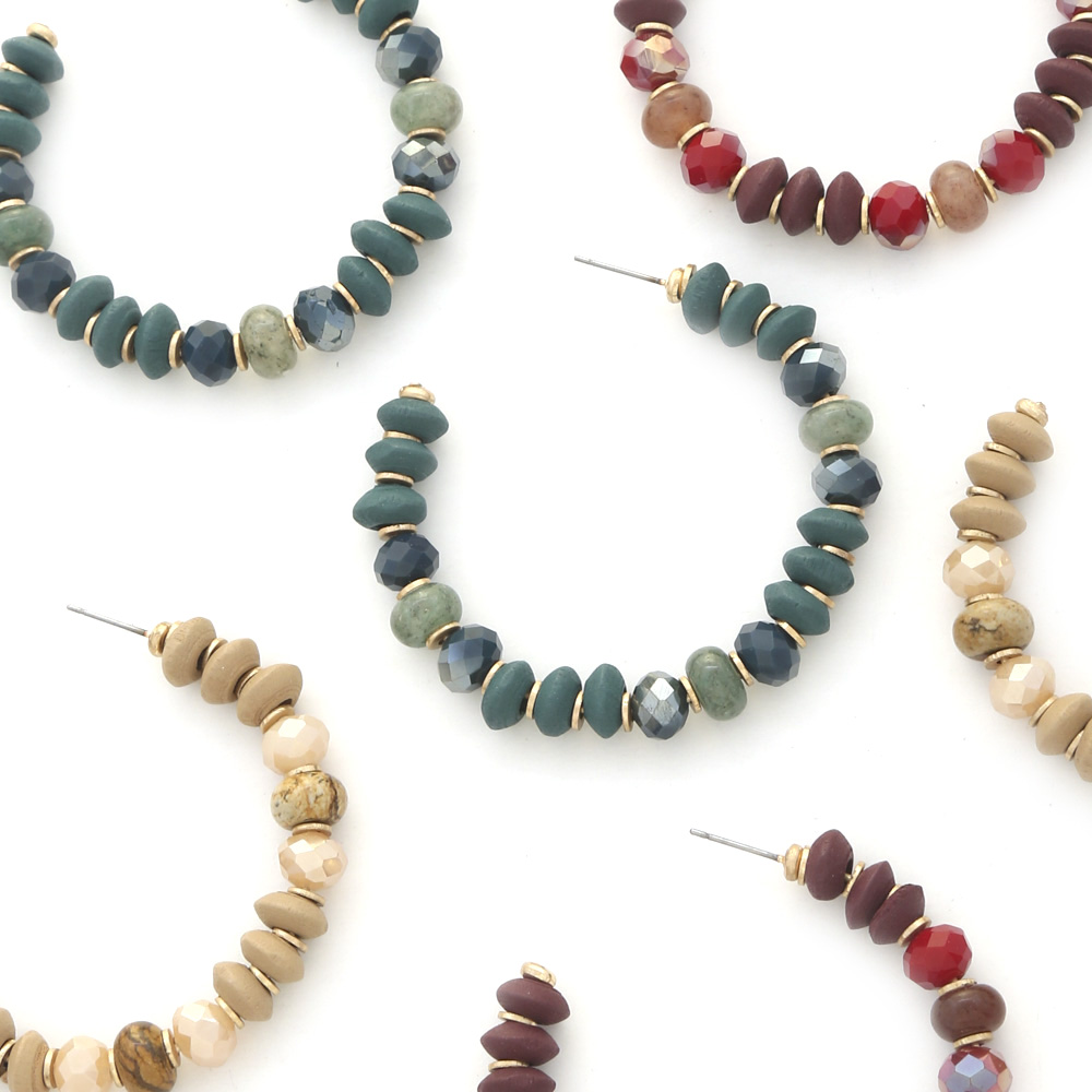 CRYSTAL COLOR METAL HOOP EARRING SET