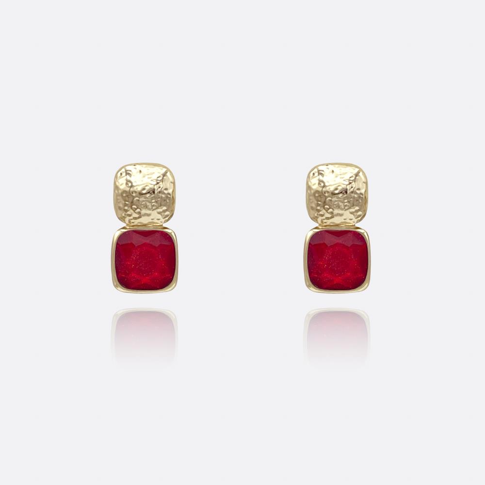 METAL WITH STONE POST EARRINGS