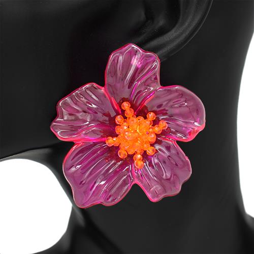 METAL RESIN FLOWER STATEMENT EARRING