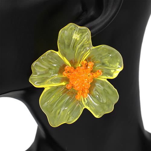 RESIN BEADED CENTER BOLD FLOWER EARRING