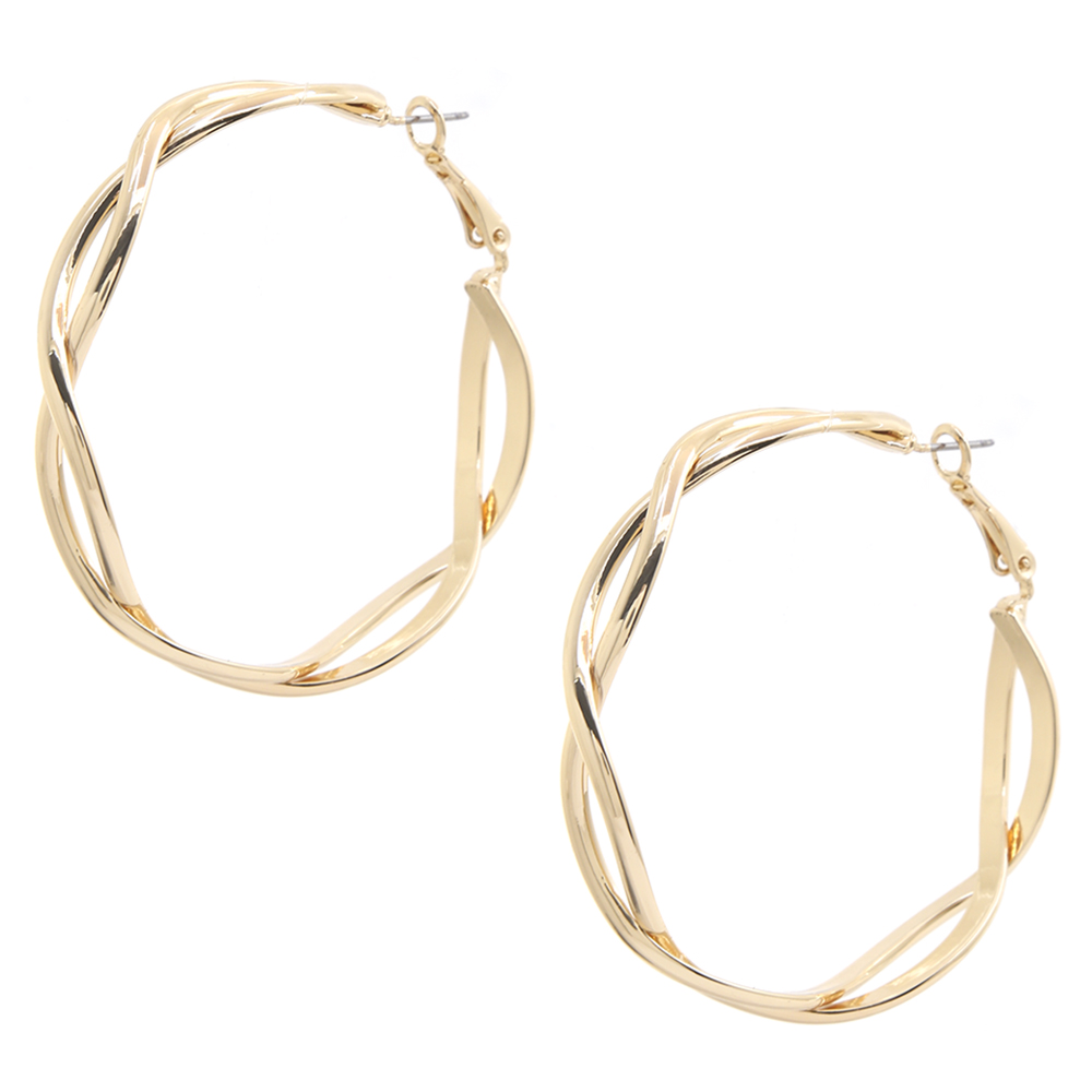 CROSSED METAL LAYERED OPEN HOOP WATER RESISTANT EARRING