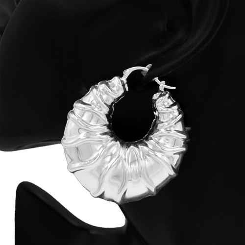 14K GOLD WHITE GOLD DIPPED RIDGED WRAP HOOP EARRINGS