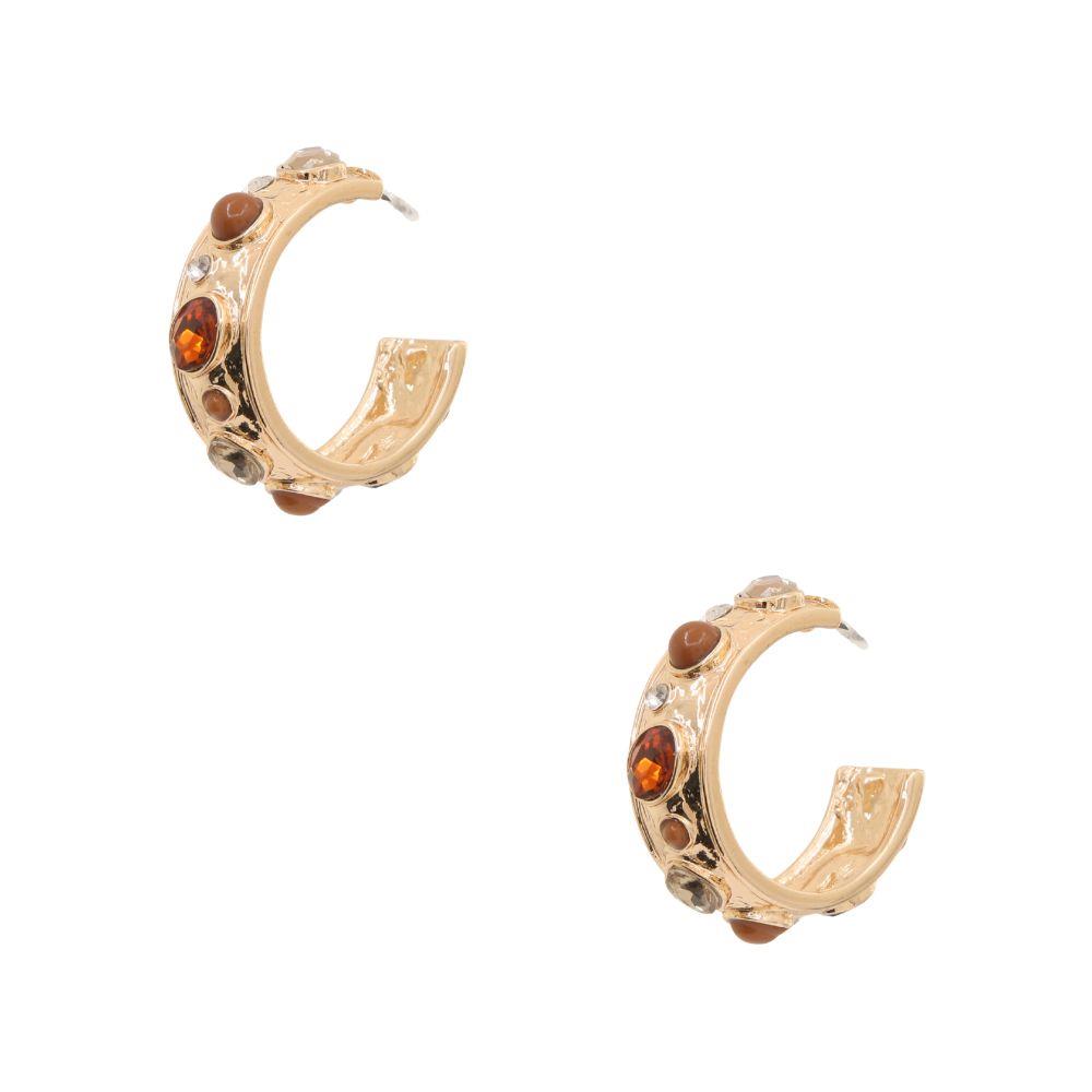 WESTERN CHAIN TXR GLASS STONE HOOP EARRING