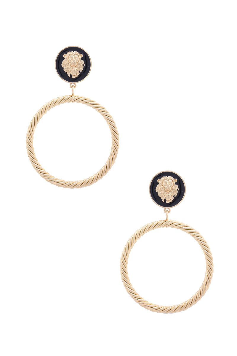 LION BEAD TWISTED CIRCLE POST DROP EARRING