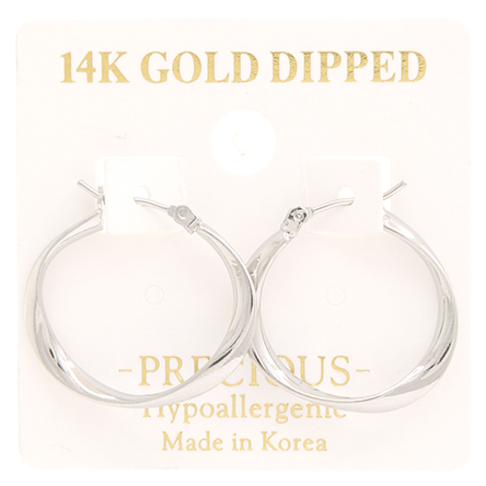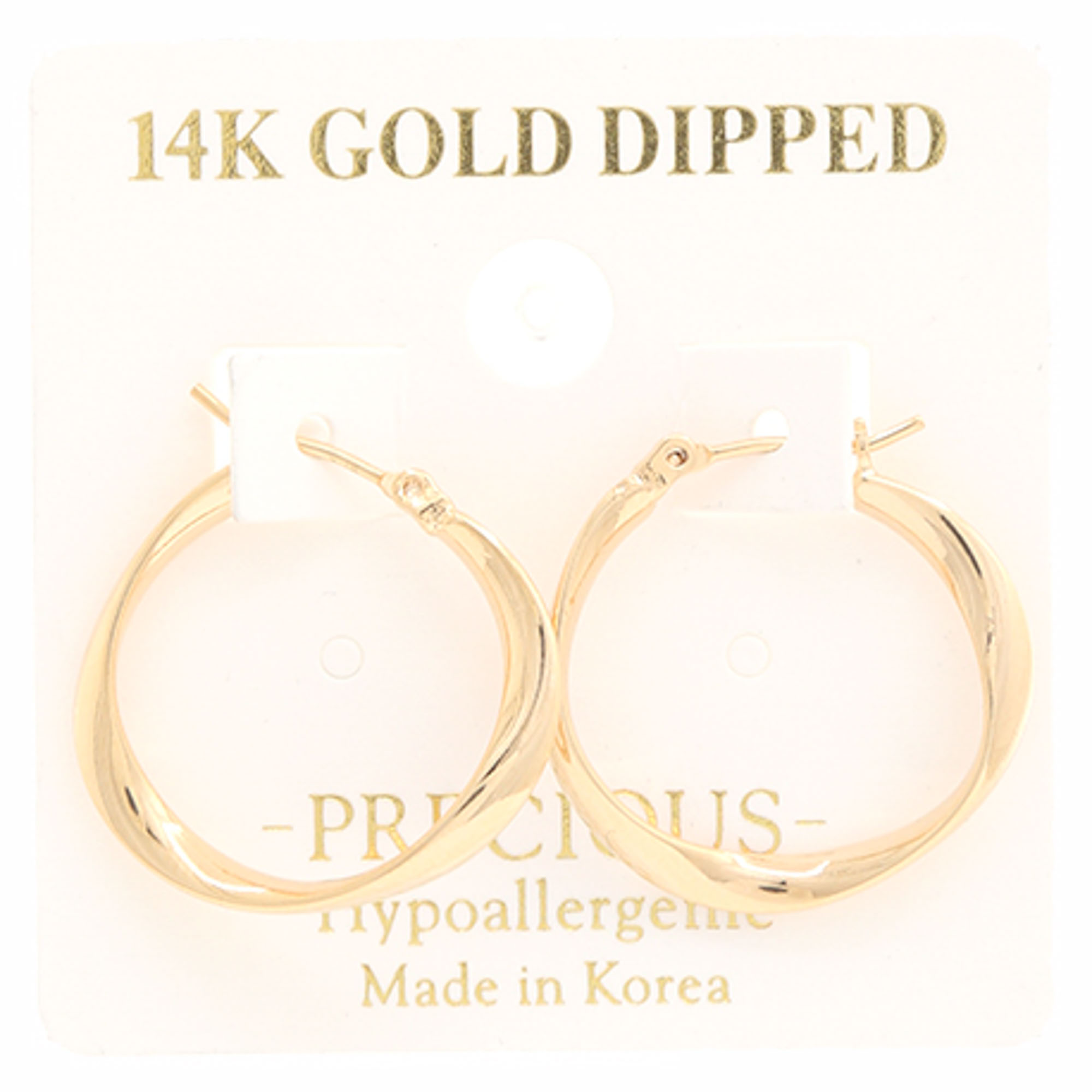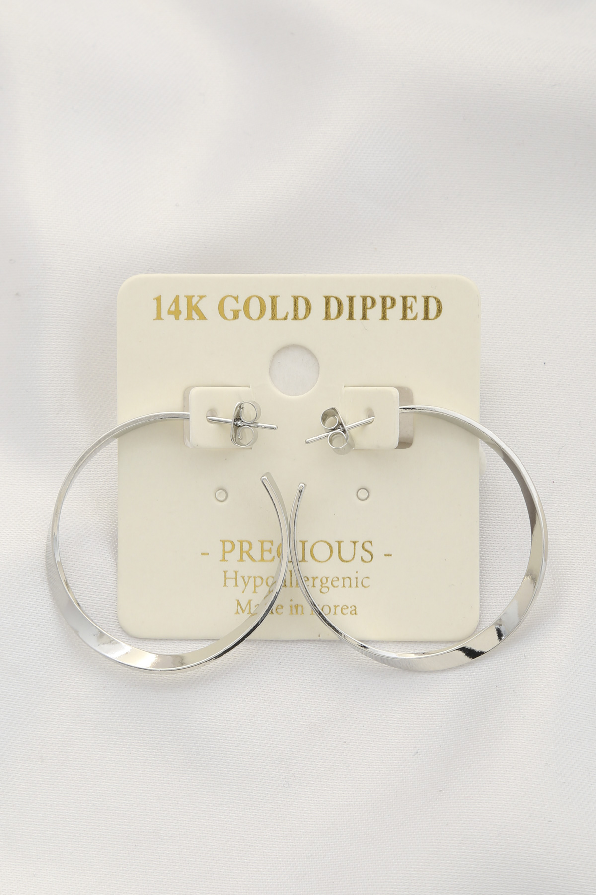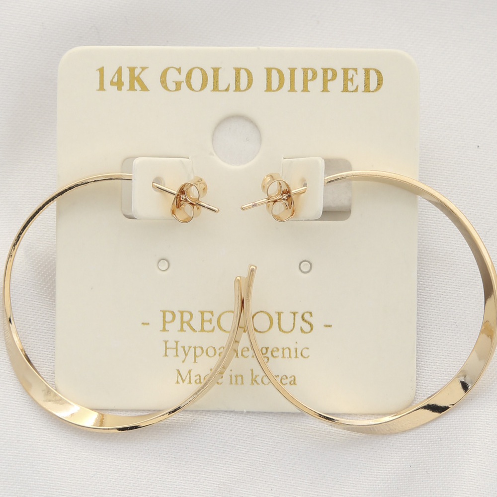 14K GOLD DIPPED FLAT TWISTED METAL HOOP EARRING