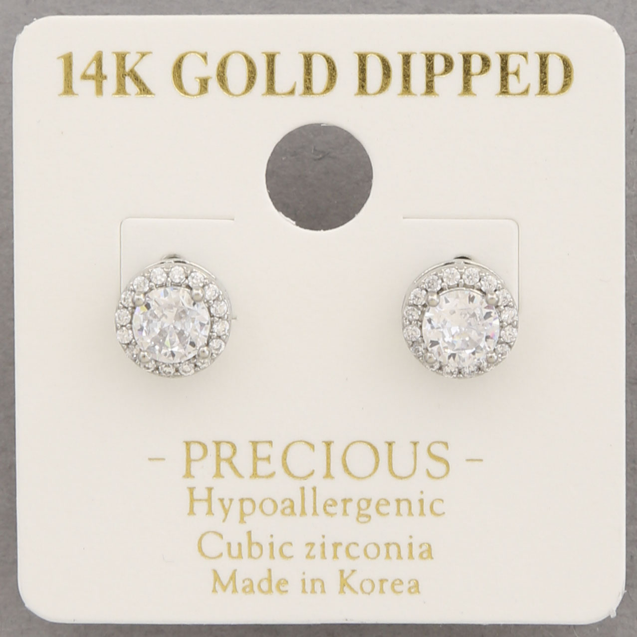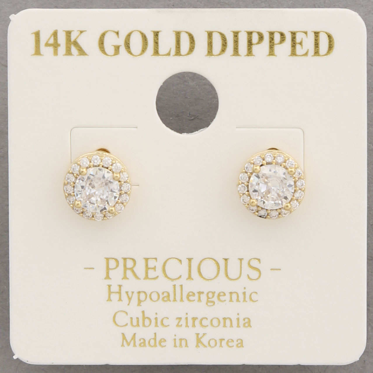 14K GOLD DIPPED ROUND CRYSTAL EARRING